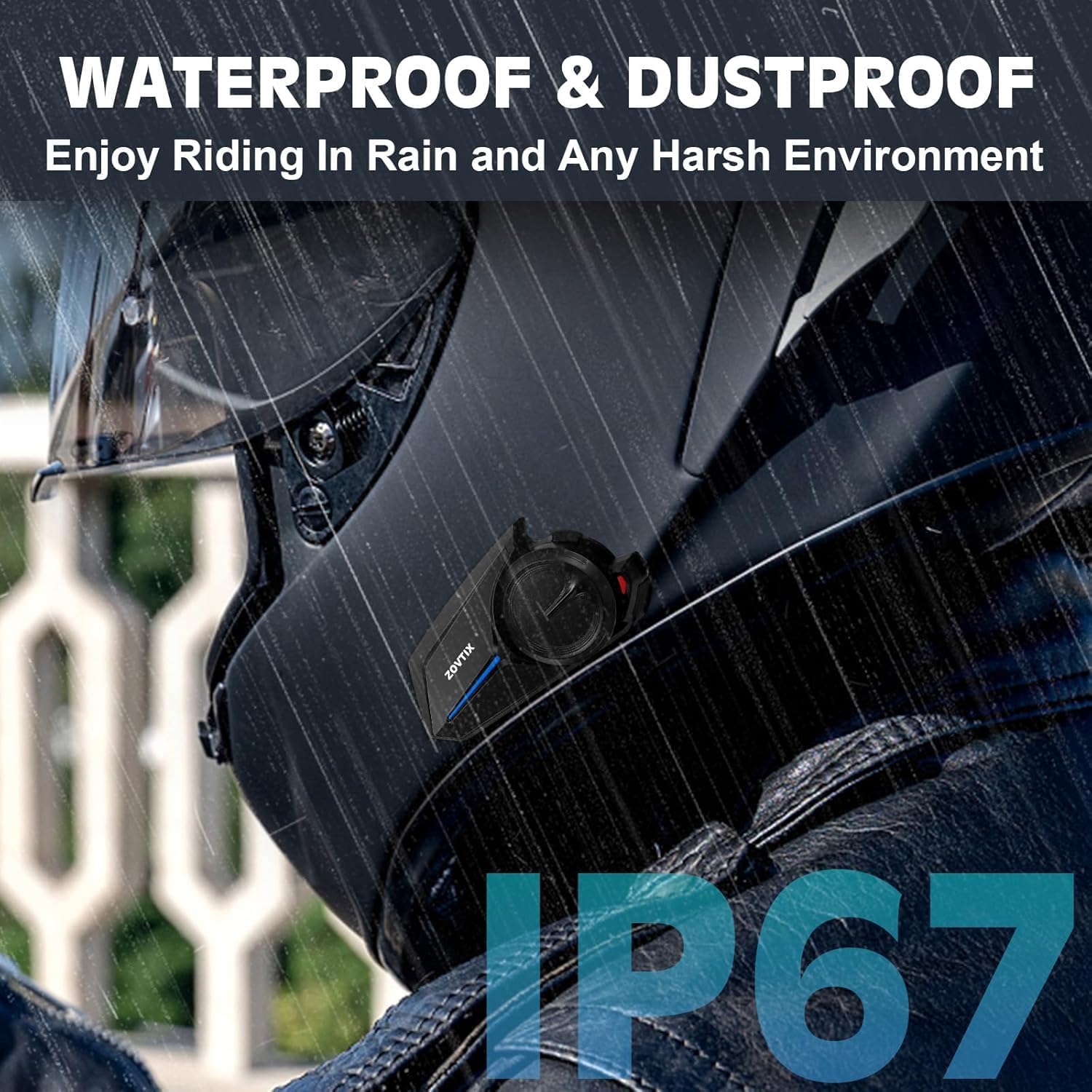 - 【1000mAh Ultra-Long Battery Life & IP67 Waterproofing】With a high-capacity 1000mAh battery, the ZOVTIX motorcycle helmet headset provides a standby time of over a week and up to 16 hours of continuous operation after just 2.5 hours of charging. Moreover, the S2 motorcycle headphones, designed with IP67 waterproof and dustproof ratings, functions seamlessly in any weather conditions, allowing you to focus on the joy of riding
