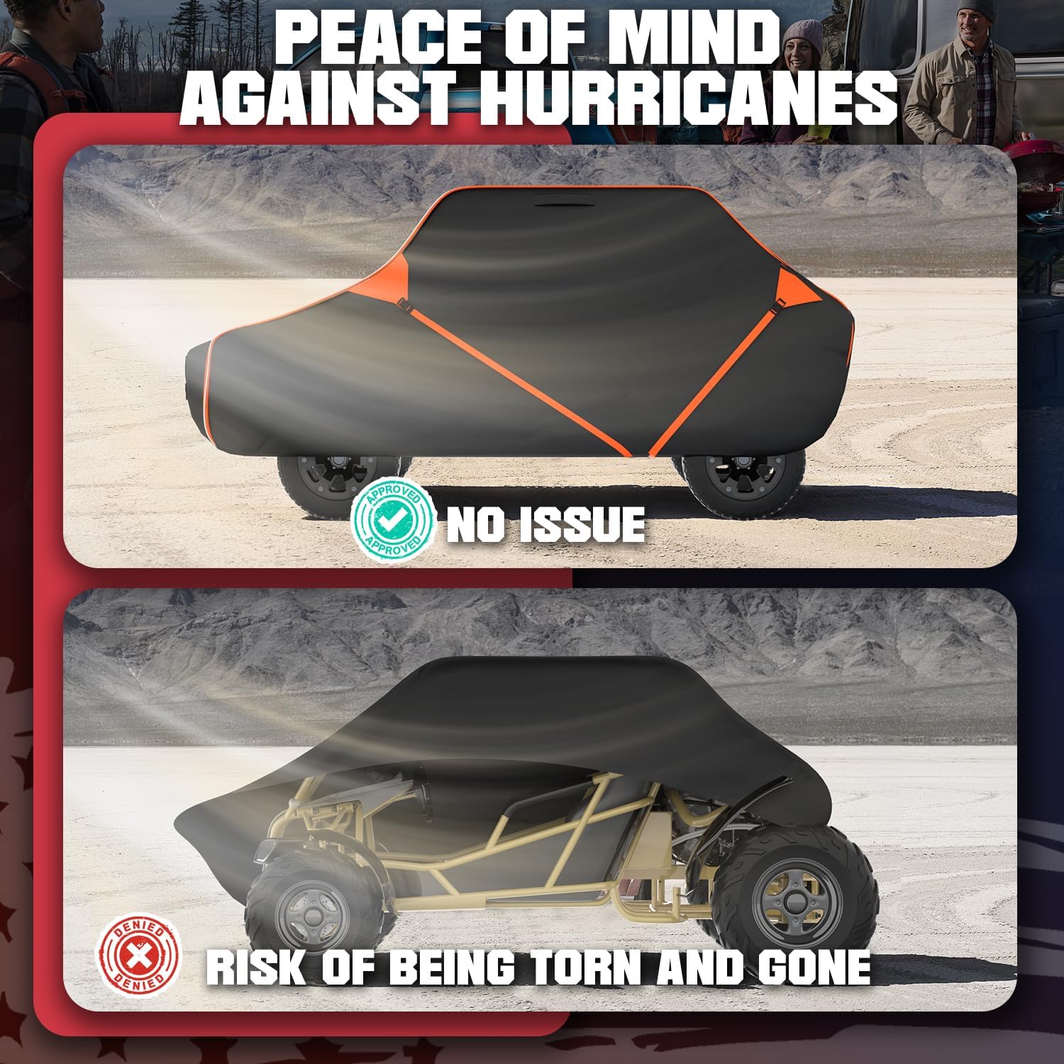- DESIGNED FOR OUTDOOR PROTECTION: The InTimesAuto 4 wheeler cover is crafted from durable 6-layer oxford cloth with reinforced stitching, offering exceptional cover waterproof outdoor performance. This outdoor heavy duty cover provides 100% waterproof heavy duty protection, shielding your side by side UTV from dust, snow, rain, and other harsh weather conditions. Perfect for outdoor season use, it ensures secure outdoor protection and waterproof outdoor storage for most UTV models.