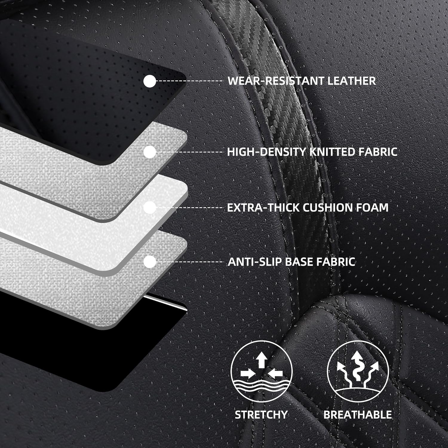 - 【High-quality Material】Crafted with premium leather and high-density foam our automotive seat covers combine luxury with durability.Not only does it have a soft touch, but it also has excellent breathability, waterproofness, and ease of cleaning. Protect your car seat from coffee splashes and pet scratches.