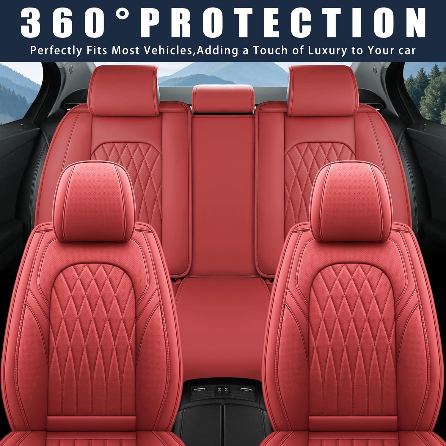 - UNIVERSAL FIT: The seat covers are compatible with most cars, SUV, pick-up and trucks. Unfold the car seat covers package, you will get 2 front and 3 rear seat covers. Once put on seat covers, the vehicle interior atmosphere instantly becomes high-end and atmospheric. You will immediately fall in love with faux leather car seat covers. Note: Car seat covers full set don't fit seats with fixed armrest.