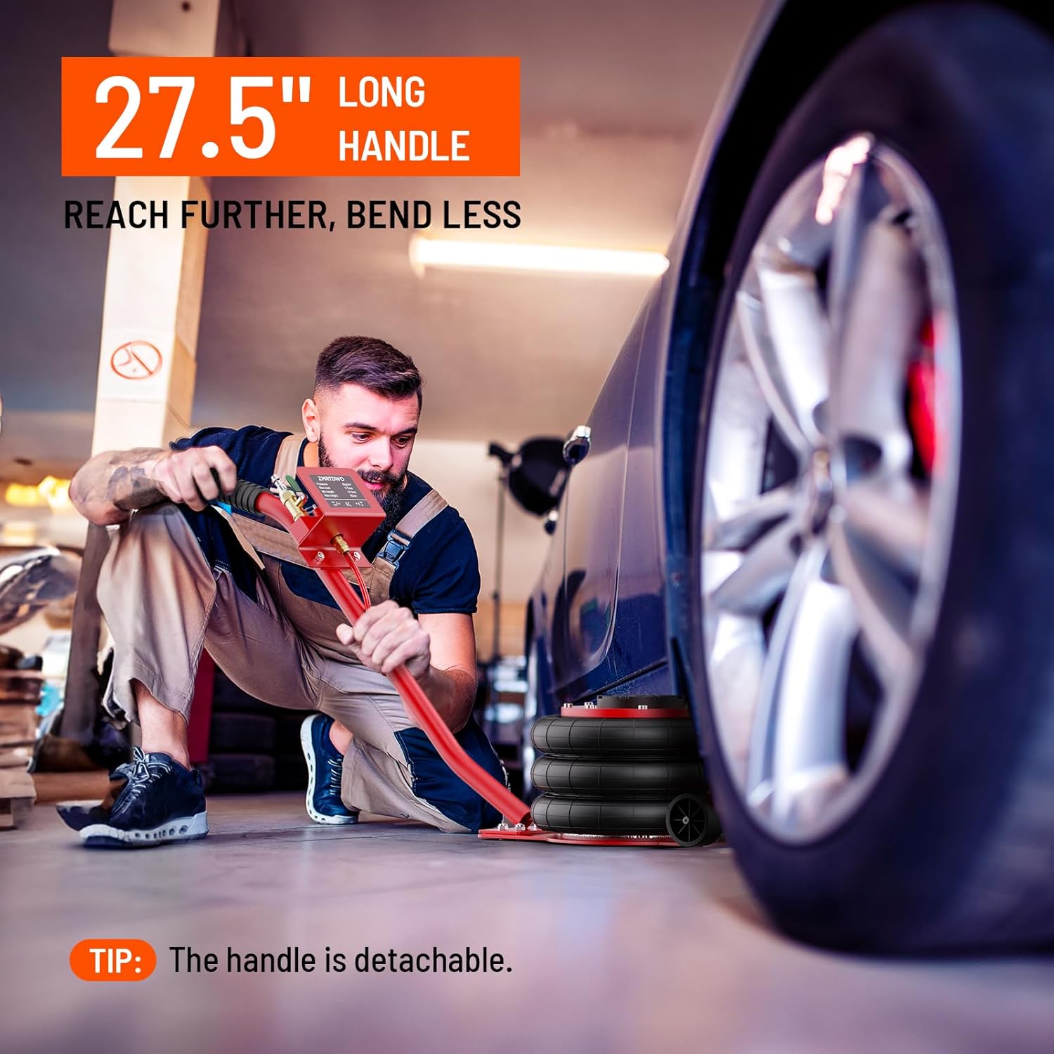 - Easy to Use: Our airbag jack is designed for easy use. It features a long handle and two smooth wheels, allowing you to position it under your vehicle without straining your back.