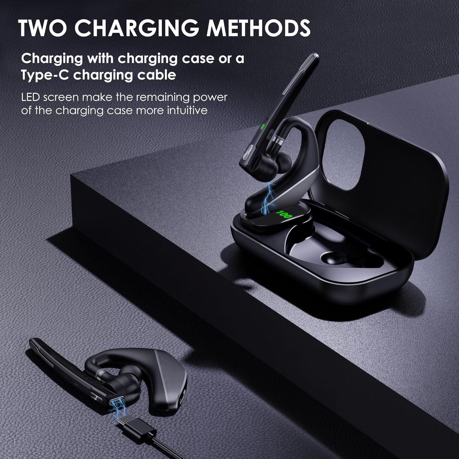 - Large battery capacity & LED Display Wireless Headphone battery capacity is 150mAh, single charge can last for 25 hours(50% volume), and it can be fully charged in 3H. Wireless earpiece comes with a 1000mAh charging case, it’s convenient for you to travel for a long time without frequently searching for a charging port. The charging box has LED digital display to show the battery life that more intuitively reminds you the remaining battery of the charging box.