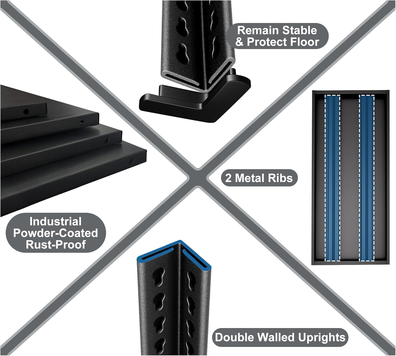 - 【Widely Application】The garage shelving heavy duty works great for basement, garage, kitchen, warehouse, living room, bedroom,etc. Moreover many customers use the shelves as aquarium rack and reptile tank rack.
