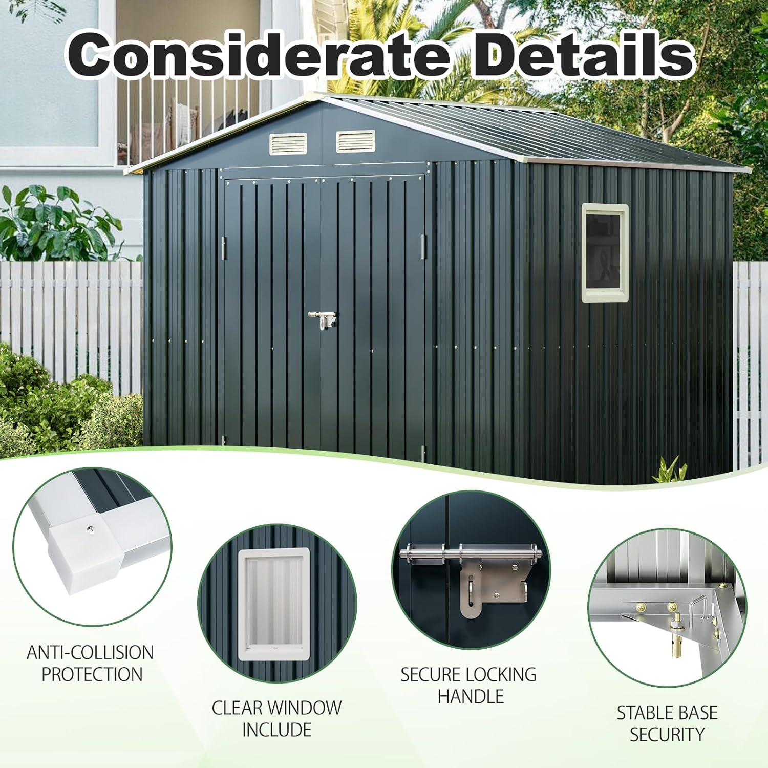 8x6FT Outdoor Steel Storage Shed with Clear Window, Lockable Doors, Weather-Resistant Metal Tool Shed for Garden, Backyard, Patio, and Utility Storage