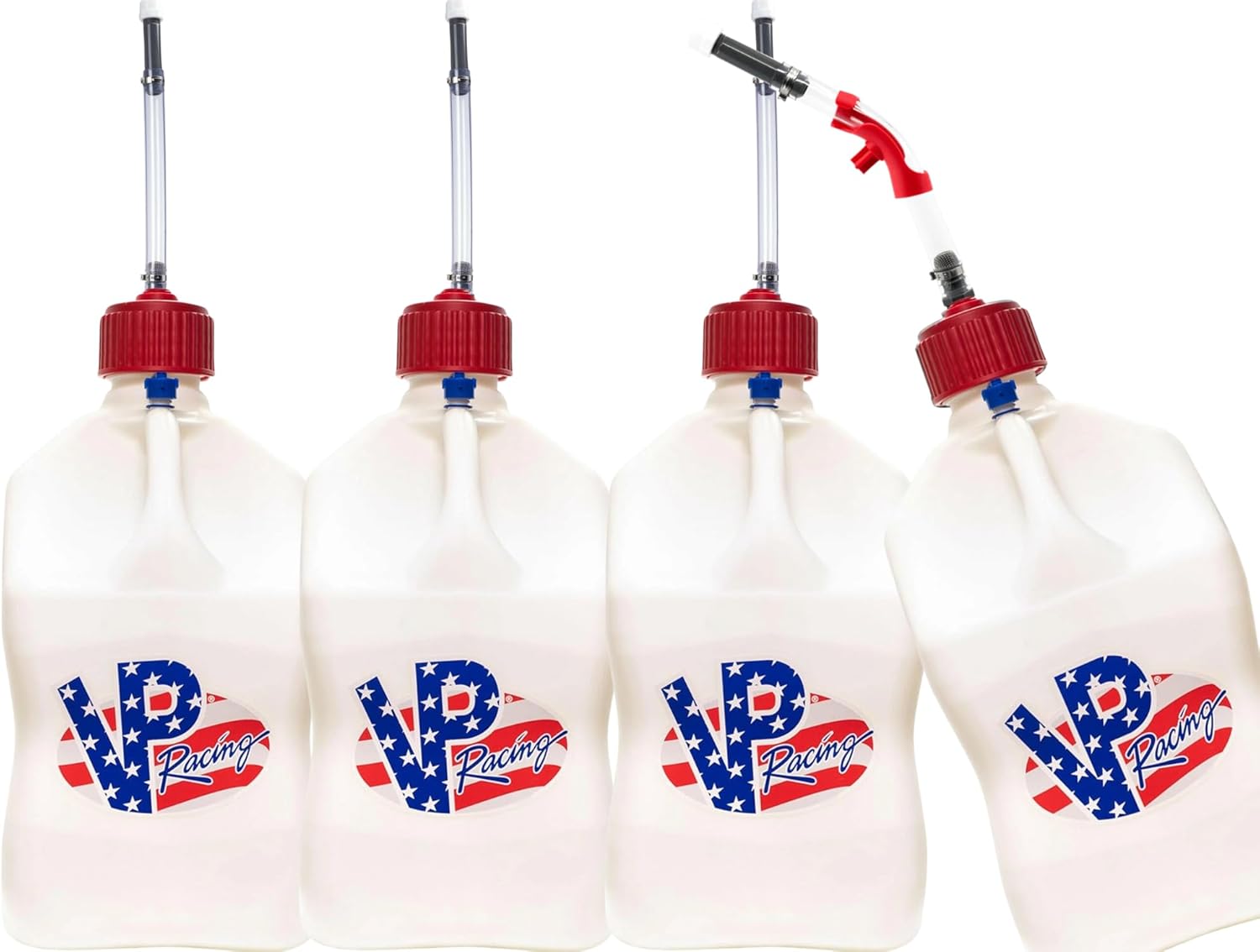 VP Racing Utility Container 5.5 Gallon - 4 Pack With 4 Deluxe Hoses and a Get Bent Hose Bender (Patriot, 4 Pack)