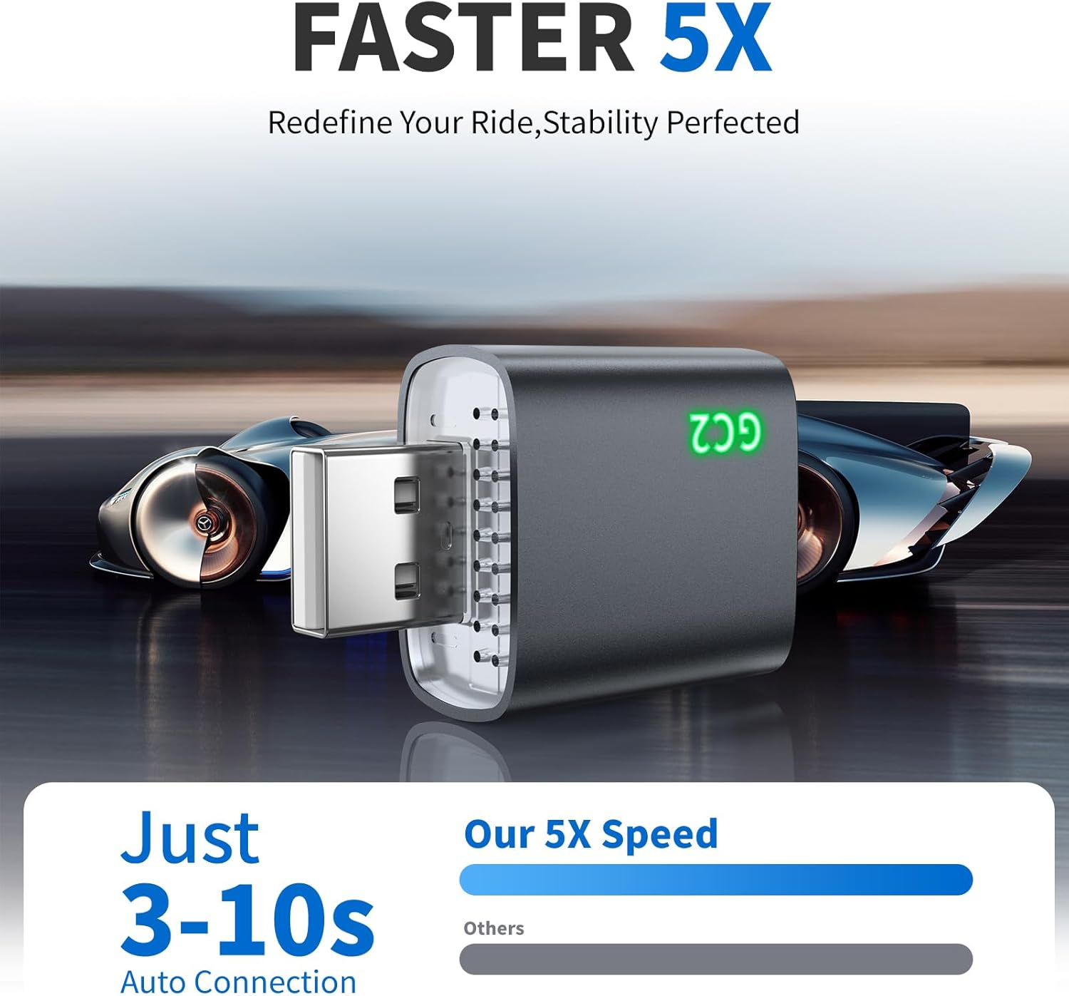 - 🚘【Lightning-Fast Wireless Connection】 Achieve 10-second initial setup and 3-second auto-reconnect with our Apple CarPlay wireless adapter. Equipped with 5.8GHz WiFi and Bluetooth 5.3, it delivers 5x faster transmission than standard adapters. Control navigation, music, calls, and messages seamlessly via Siri or touchscreen, buttons, or knobs—zero daily lag ensures safer driving. (Your Cars must support OEM wired CarPlay and USB C Port)
