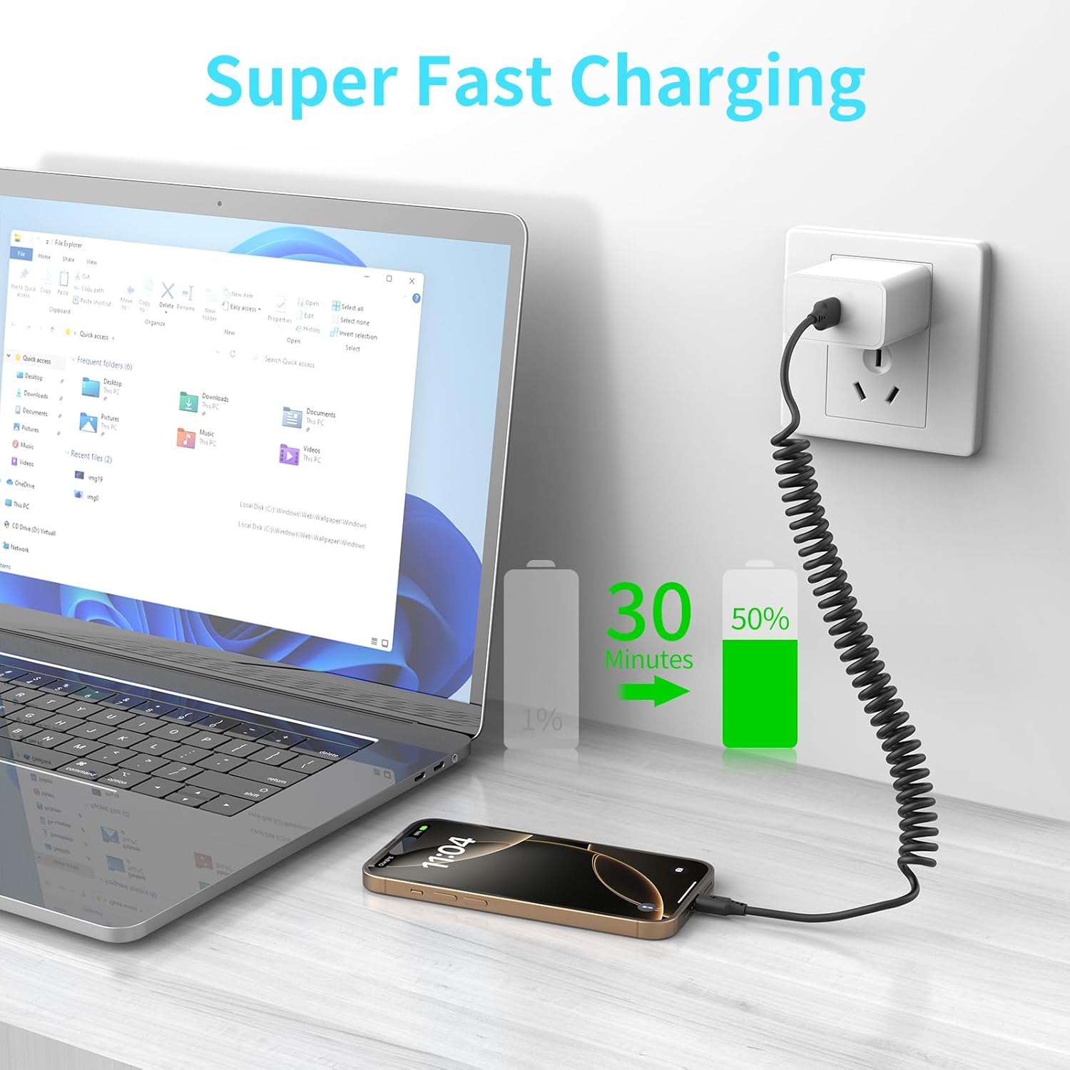 - Fast Charging and Data Transfer: This coiled usb c cable providing fast charging (3A) and data transfer (480Mbps). Coiled usb cable can be easily used at home, office, outdoors and support to connect android auto, takes you less time to fully charge