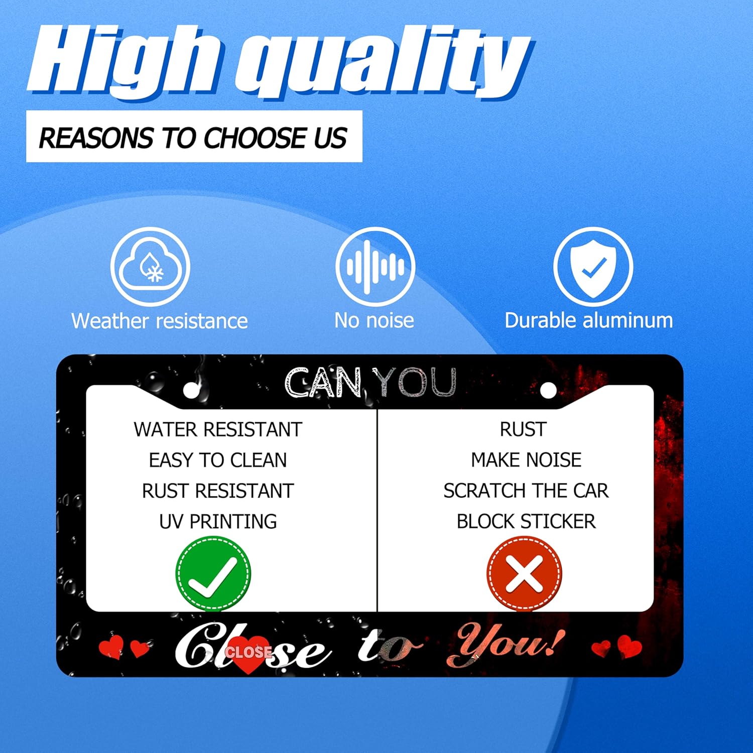 Funny License Plate Frame Can You Close to You License Plate Stainless Steel Black License Plate Holder for Men Women Personalized Car Accessory Decoration 12.3" x 6.3"