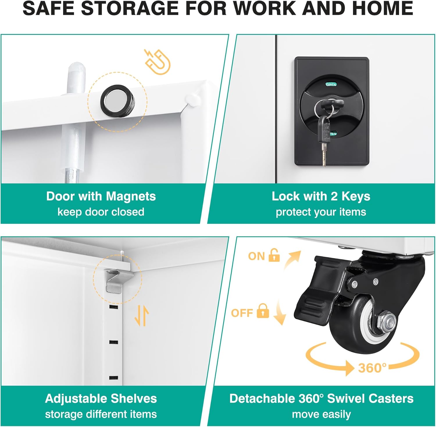 - ✔️☆【Detachable & Lockable 360° Swivel Casters - Adjust As Needed】:Metal storage cabinet on wheels is easy to move around.It has a strong and durable metal frame with excellent load-bearing capacity, allowing you to store enough items.