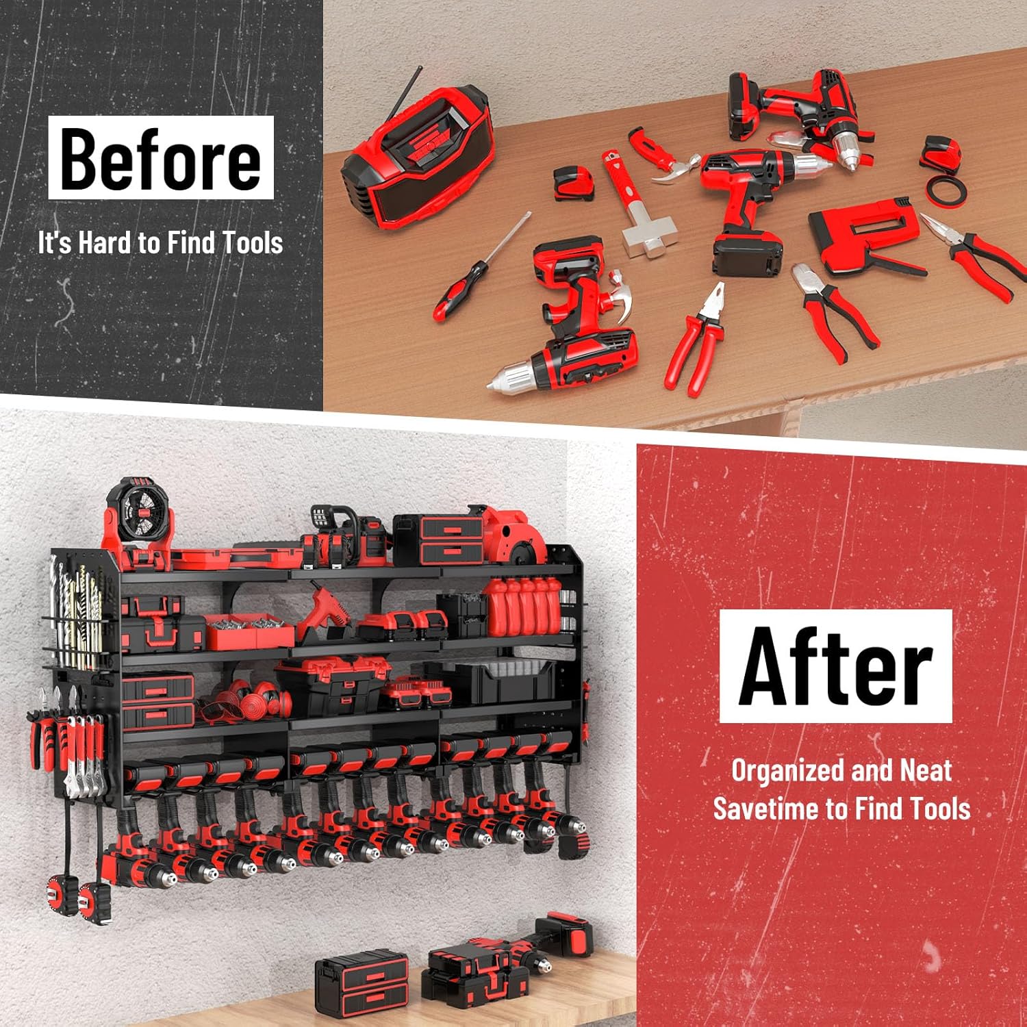- 【Easy to Install】The garage storage shelves are removable design, refer to the installation manual, you can assemble a perfect cordless drill rack and tool shelf in just a few minutes.The installation is really straightforward and it's the perfect solution!