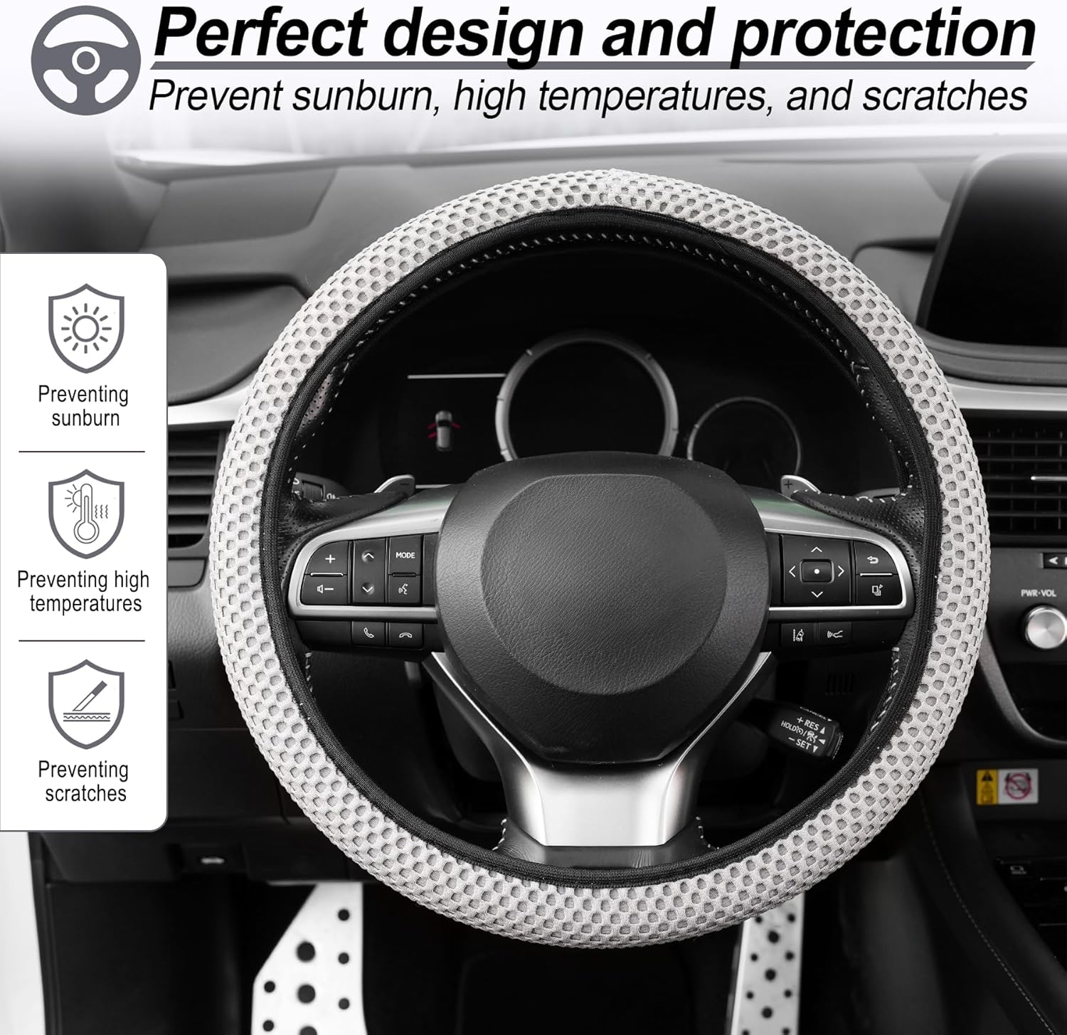 alpmosn Elastic Stretch Steering Wheel Cover, Breathable Microfiber Ice Silk, Anti-Slip, Odorless, Easy Carry, Universal Interior Accessories Steering Wheel Cover for Women & Men (Grey)