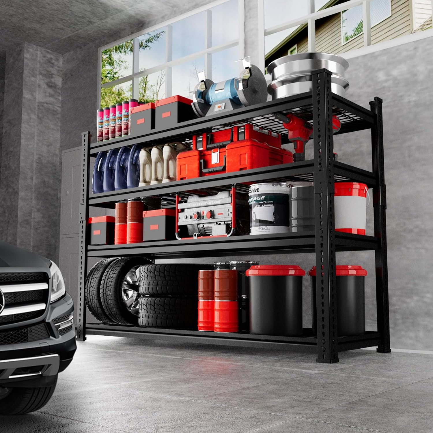 - 2640LBS Heavy Duty Capacity: MODCART's heavy-duty garage shelving is built with robust steel columns, supporting up to 660 lbs per shelf for a total of 2640 lbs. it offers reliable organization for your garage, kitchen, or laundry room