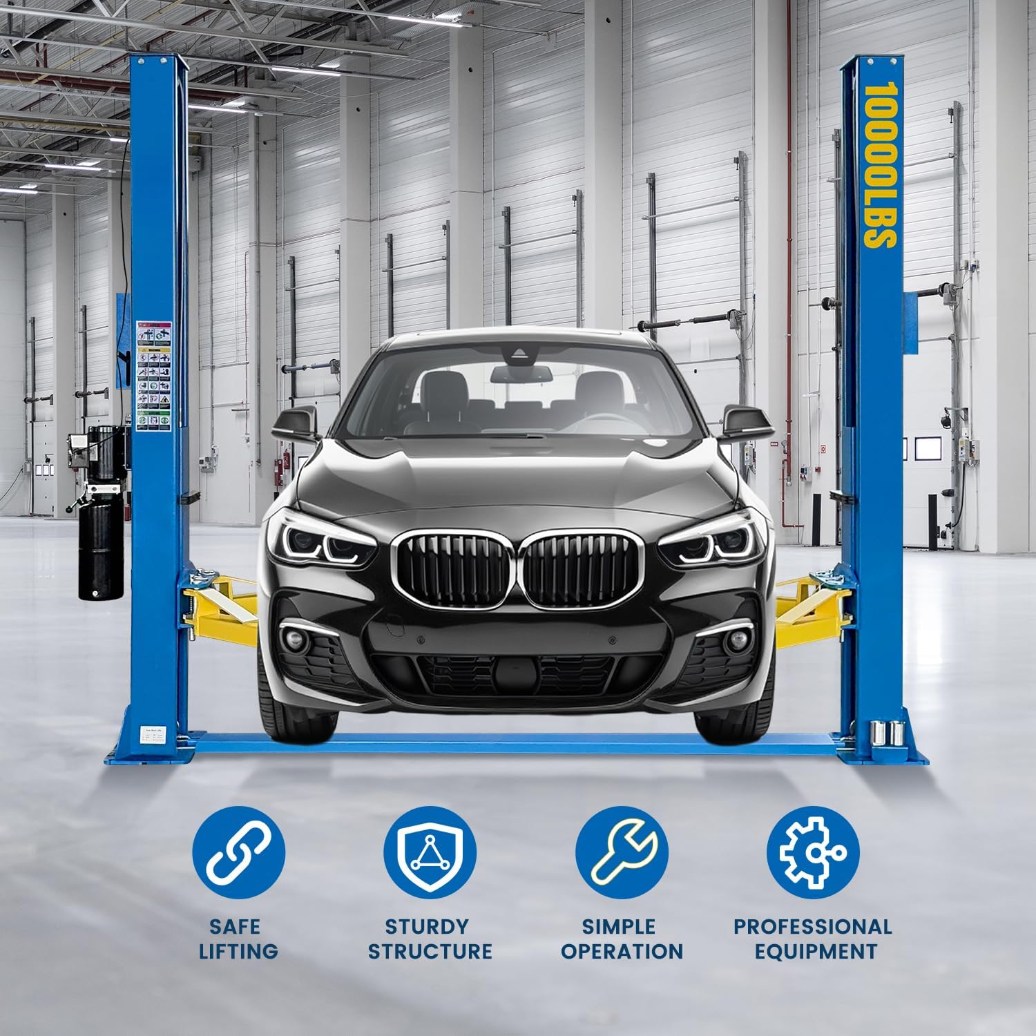110V Two Post Car Lift 10,000 LBS Heavy Duty Floor Plate 2 Posts Auto Hoist Truck Lift for Garage w/ 36 Months Parts Replacement