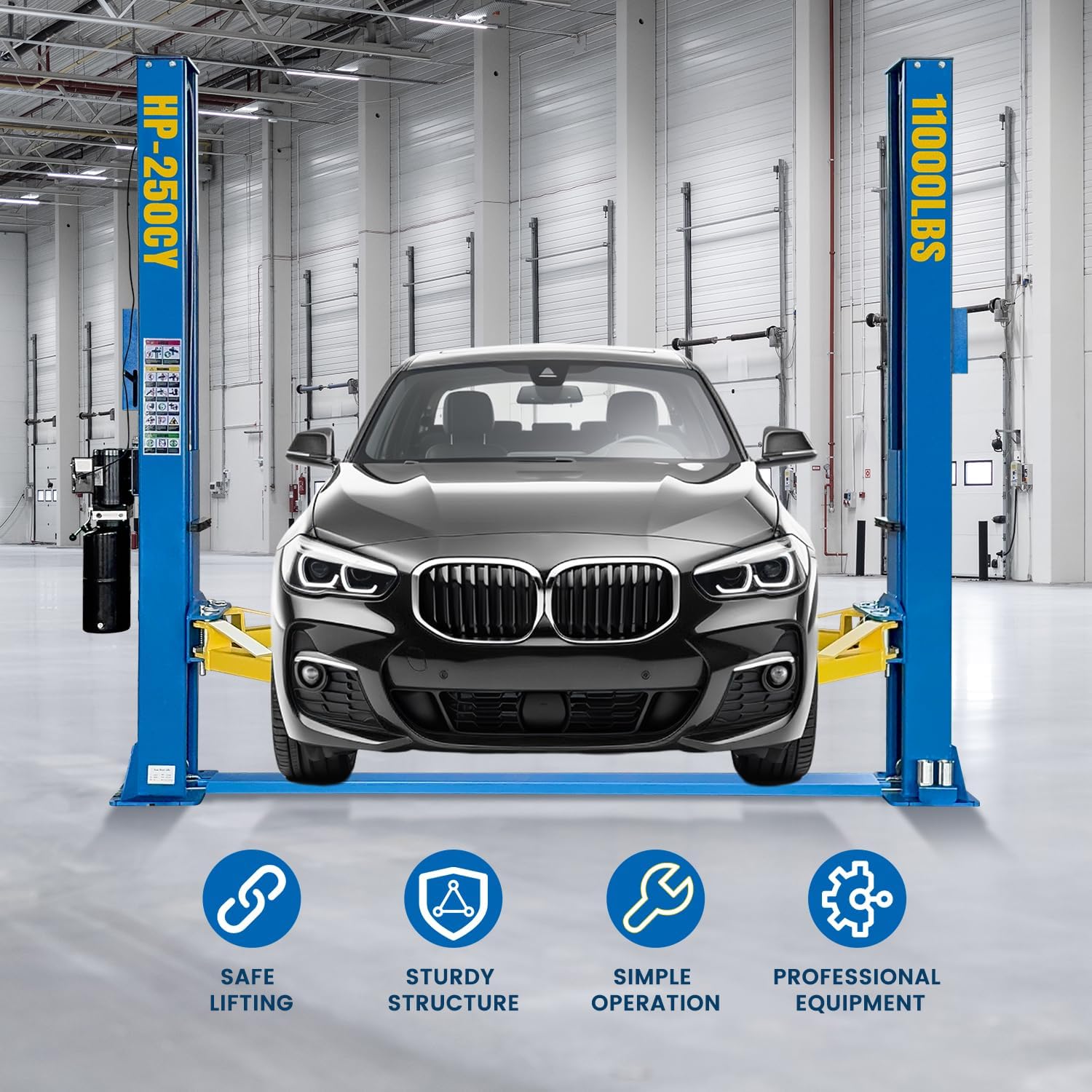 110V Two Post Car Lift 11,000 LBS Heavy Duty Floor Plate 2 Posts Auto Hoist Truck Lift for Garage w/ 36 Months Parts Replacement