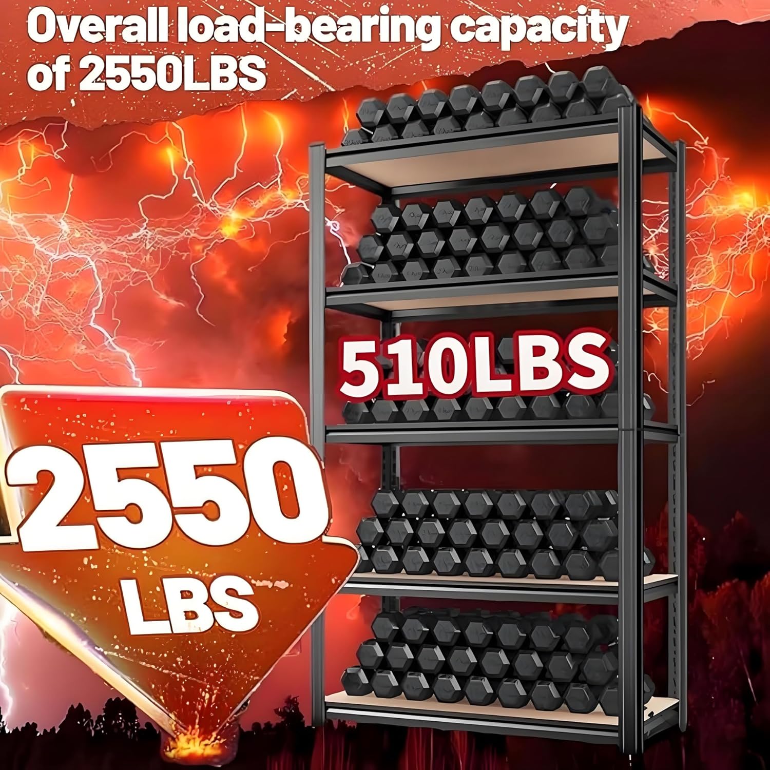 Garage Shelves, 72”H Adjustable Shelves for Garage/Basement/Warehouse, Heavy Duty Metal Storage and Organizer Rack, 5-Tier Tall and Large Organizing Shelf, 71.2”H×35.4”W×15.8”D
