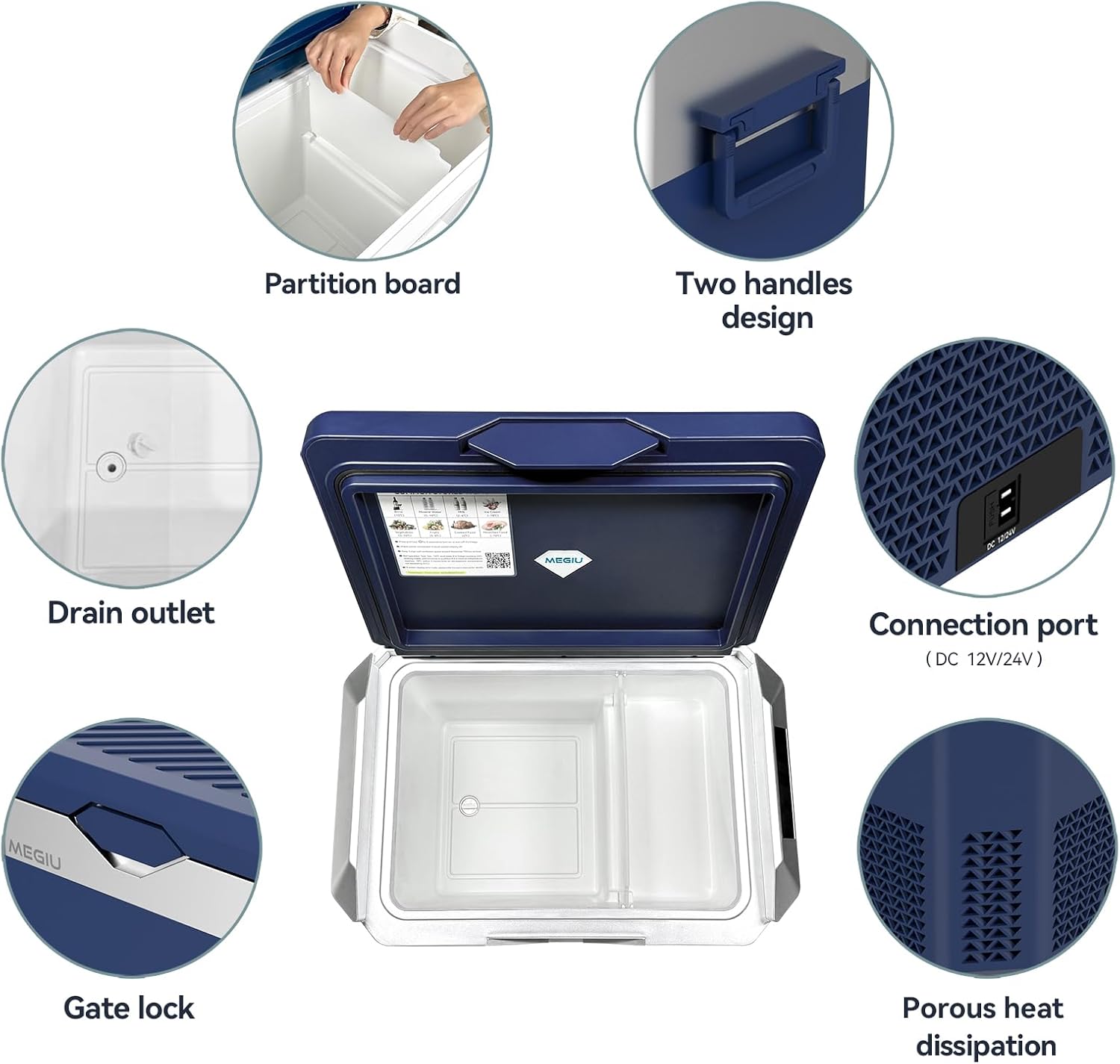 - Advanced Battery Protection – Features three-level battery protection (Low, Medium, High) to prevent car battery drain, ensuring safe operation on long drives with this car refrigerator.