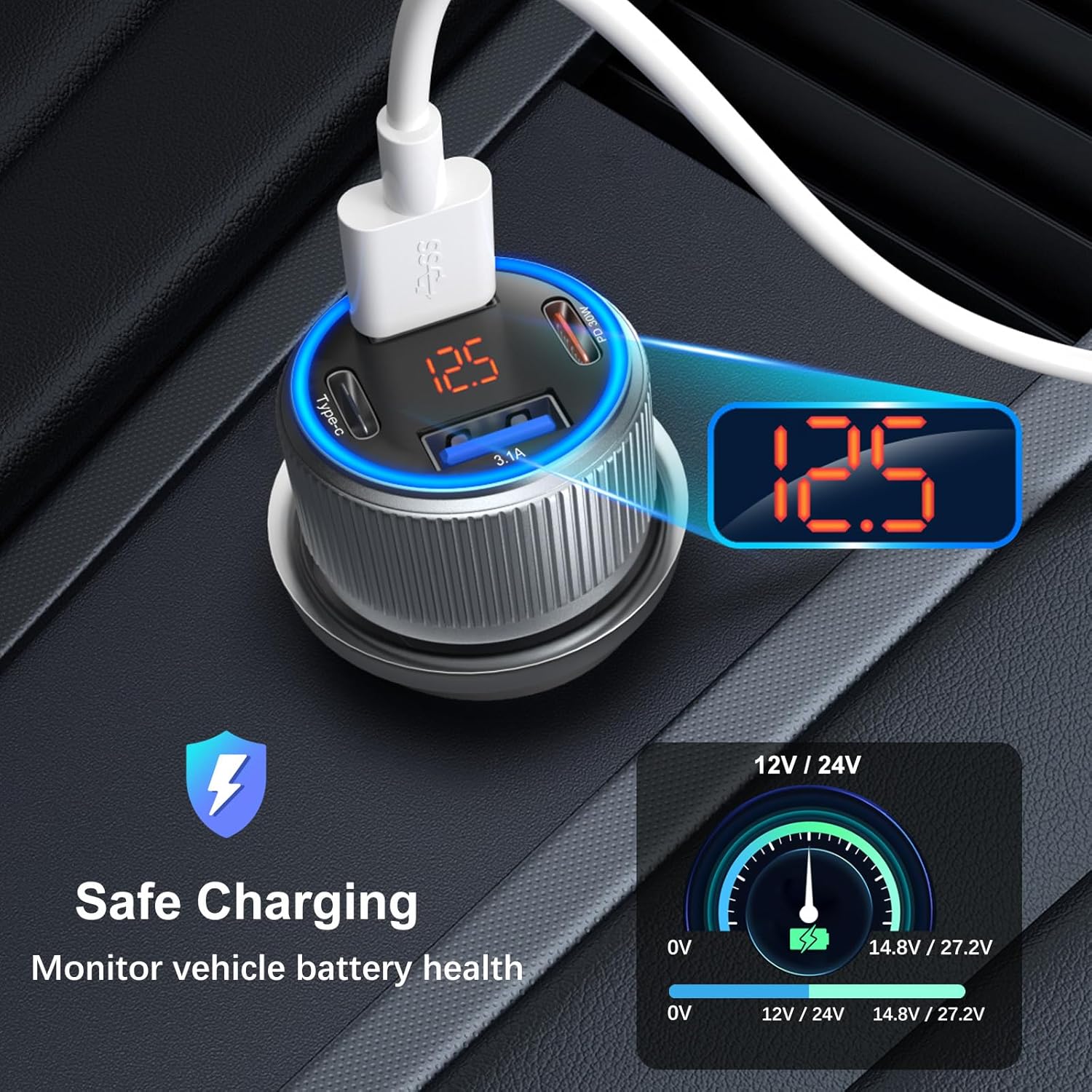 - Wide Compatible: Wide range from dc 12V-24V(6A), the 12 volt usb c car charger outlet works great with smart phones, tablets, wireless car charger, dash cams, usb fans and other usbc and usb car accessories. Fast charge compatible with iPhone 16/15/14/13/12/11 Pro Max/Plus/Mimi; Pad Pro/Mini; iPhone XR/SE/XR/Xs/Xs Max/8/7 Plus,Galaxy S25/S24/S23/S22/21/S20/S10/S9/S8+,Note 20/10/9/8, A03S 5G/A13/A14/A15/A53/A54/A71, android phones, driving recorder, GPS navigation, car vacuum cleaner, power banks and other devices.