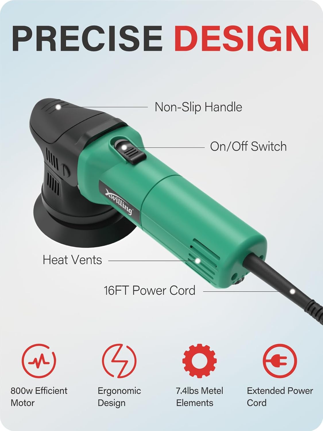 - High-Performance Polishing Machine: High-performance 800 watt motor, 8mm dual action orbital provides the power you need for your project. Carbon brushes are structurally safe, long-lasting, and easy to replace. Heat-resistant copper wire motor allows longer working time. High-performance electric polishers help increase your efficiency