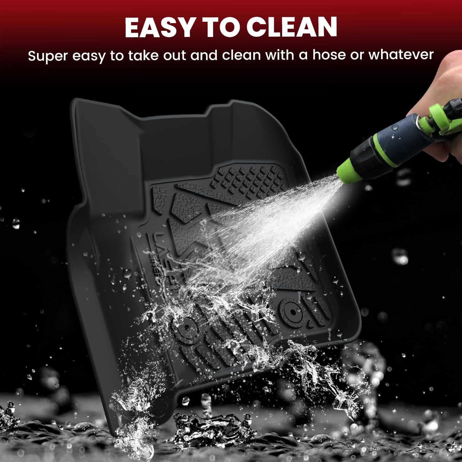 - ALL WEATHER PROTECTION - LASFIT F250 F350 floor mats Shield your floor from dirt, mud, salt, rain, snow, and even hot summer temperatures. Cleaning up daily wear and tear off our car mats is a breeze.