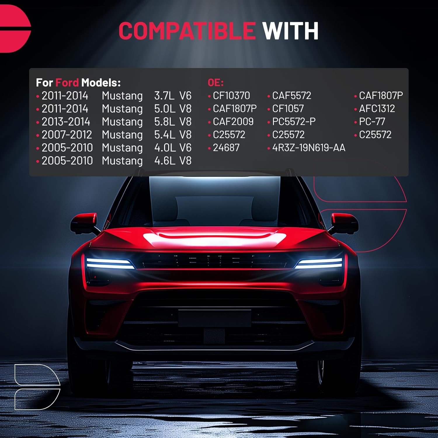 - [Vehicle Fitment] Compatible with Ford Mustang 2011-2014 3.7L V6, Mustang 2011-2014 5.0L V8, Mustang 2013-2014 5.8L V8, Mustang 2007-2012 5.4L V8, Mustang 2005-2010 4.0L/4.6L V6