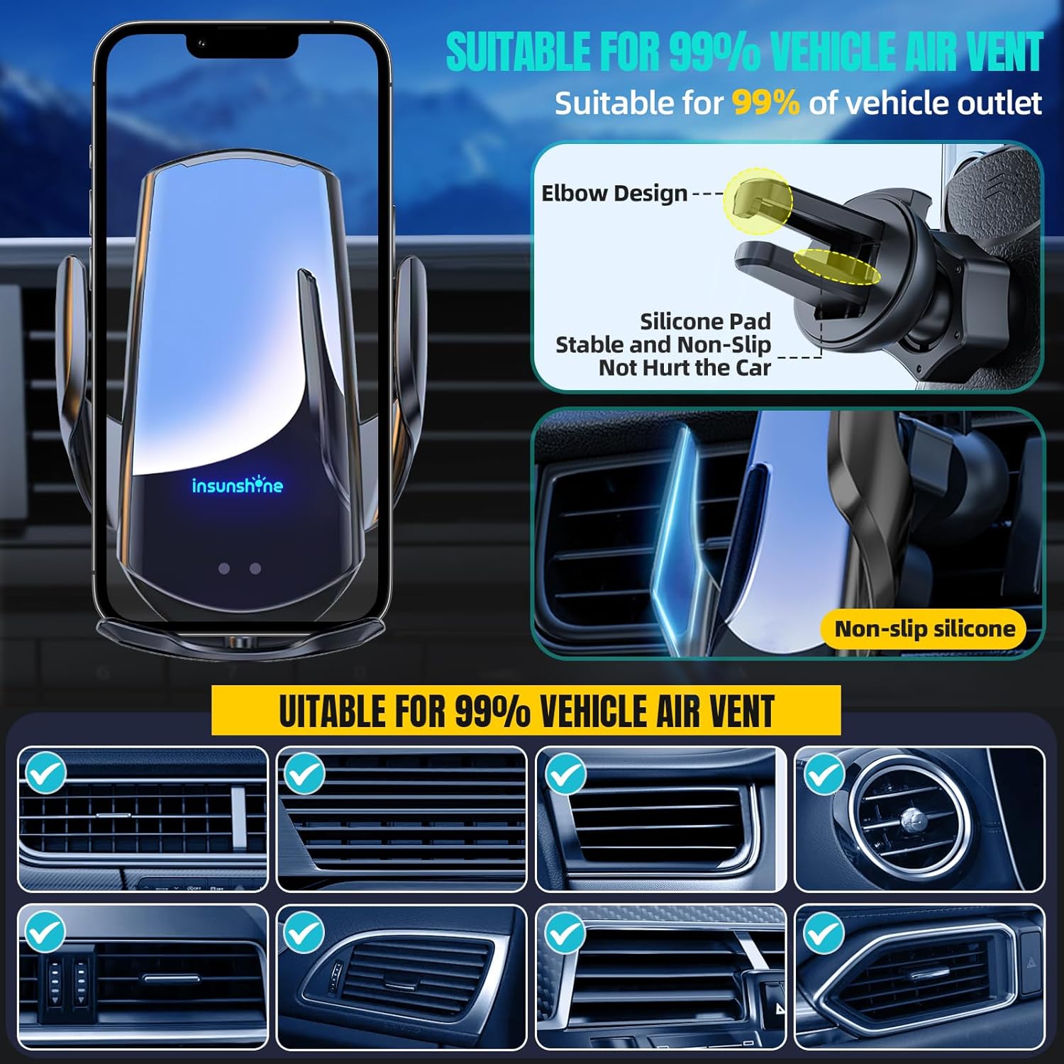 - ă15W QI Fast Wireless Car ChargerăUpgraded wireless charging with 15W stable and efficient. Meets international QI certification standards for QI-enabled smartphones, and requires QC3.0 car charger adapter (not included) to have fast charging mode with insunshine car phone holer