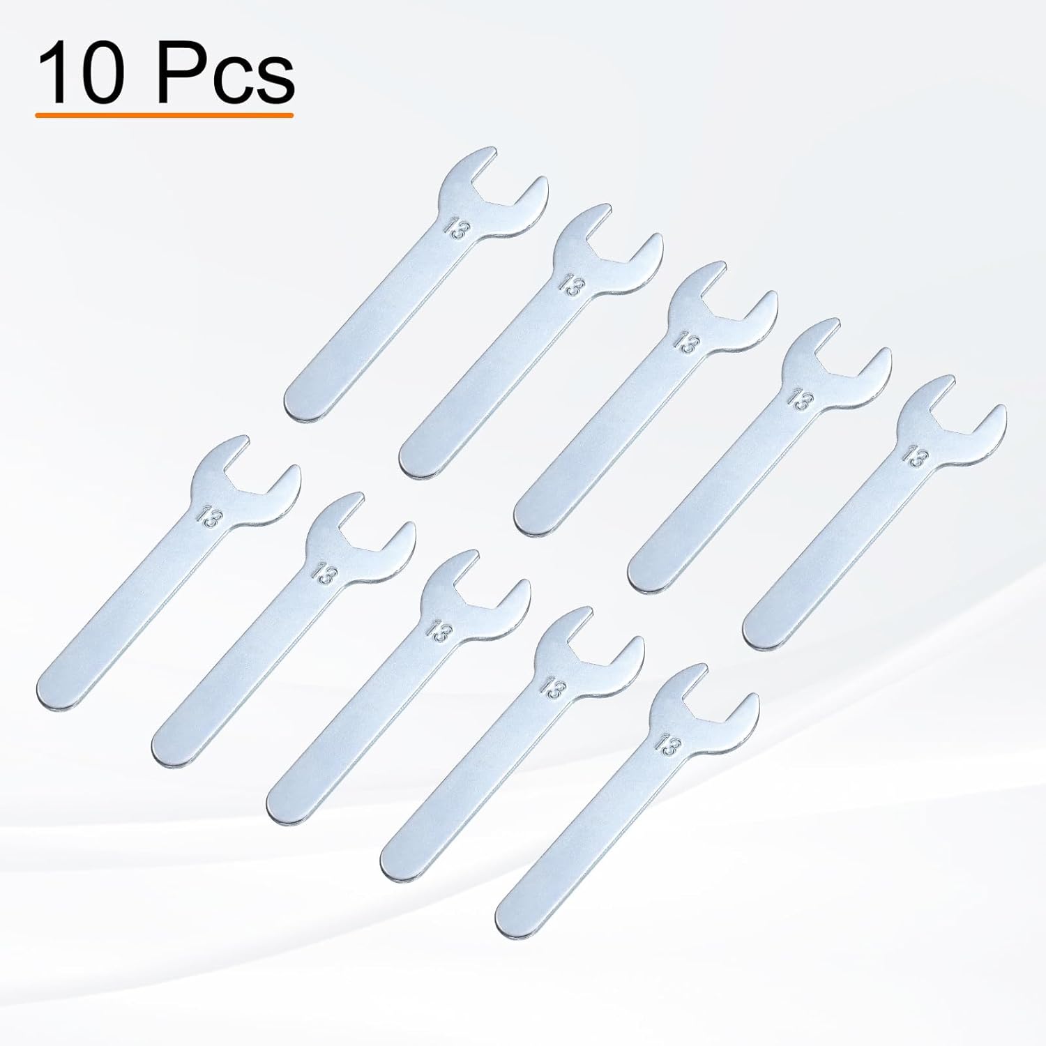 - Size - Open end: 13mm / 0.51"; Open outside width: 27mm / 1.06"; Total length: 87mm / 3.43"; Stem thickness: 2mm / 0.08"; Stem width: 12mm / 0.47"; Color: Silver-grey; Package includes: 10 x Single open-end wrenches. The open wrench set is thin enough to work on tight spots.
