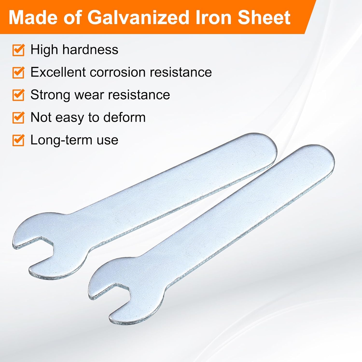 - Long Lasting - Our single open-end wrench is made of an iron plate, which has high hardness and excellent corrosion resistance. The surface galvanizing improves its wear resistance, keeps its surface smooth and reduces wear, is not easy to deform, and can be used for a long time.