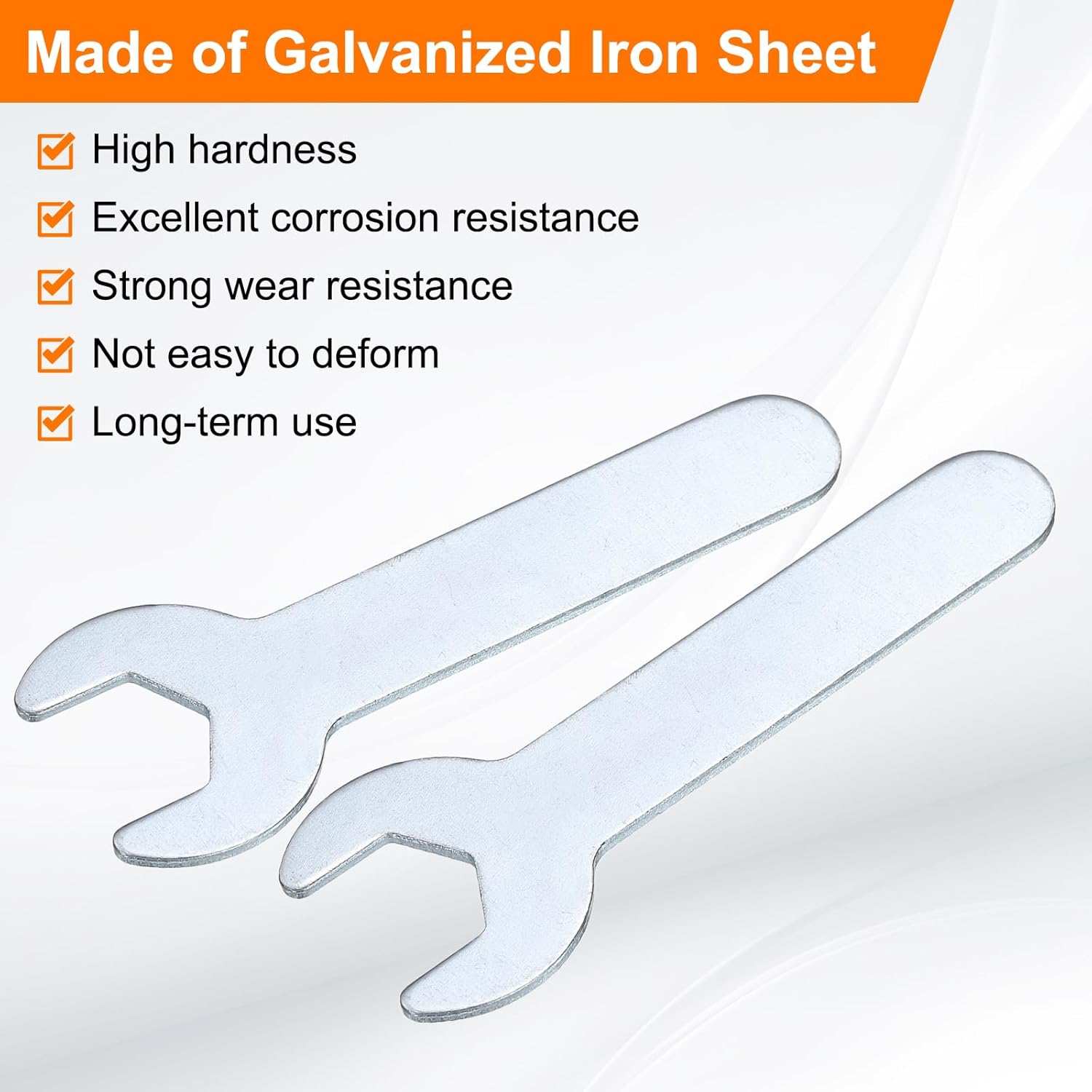 - Long Lasting - Our single open-end wrench is made of an iron plate, which has high hardness and excellent corrosion resistance. The surface galvanizing improves its wear resistance, keeps its surface smooth and reduces wear, is not easy to deform, and can be used for a long time.