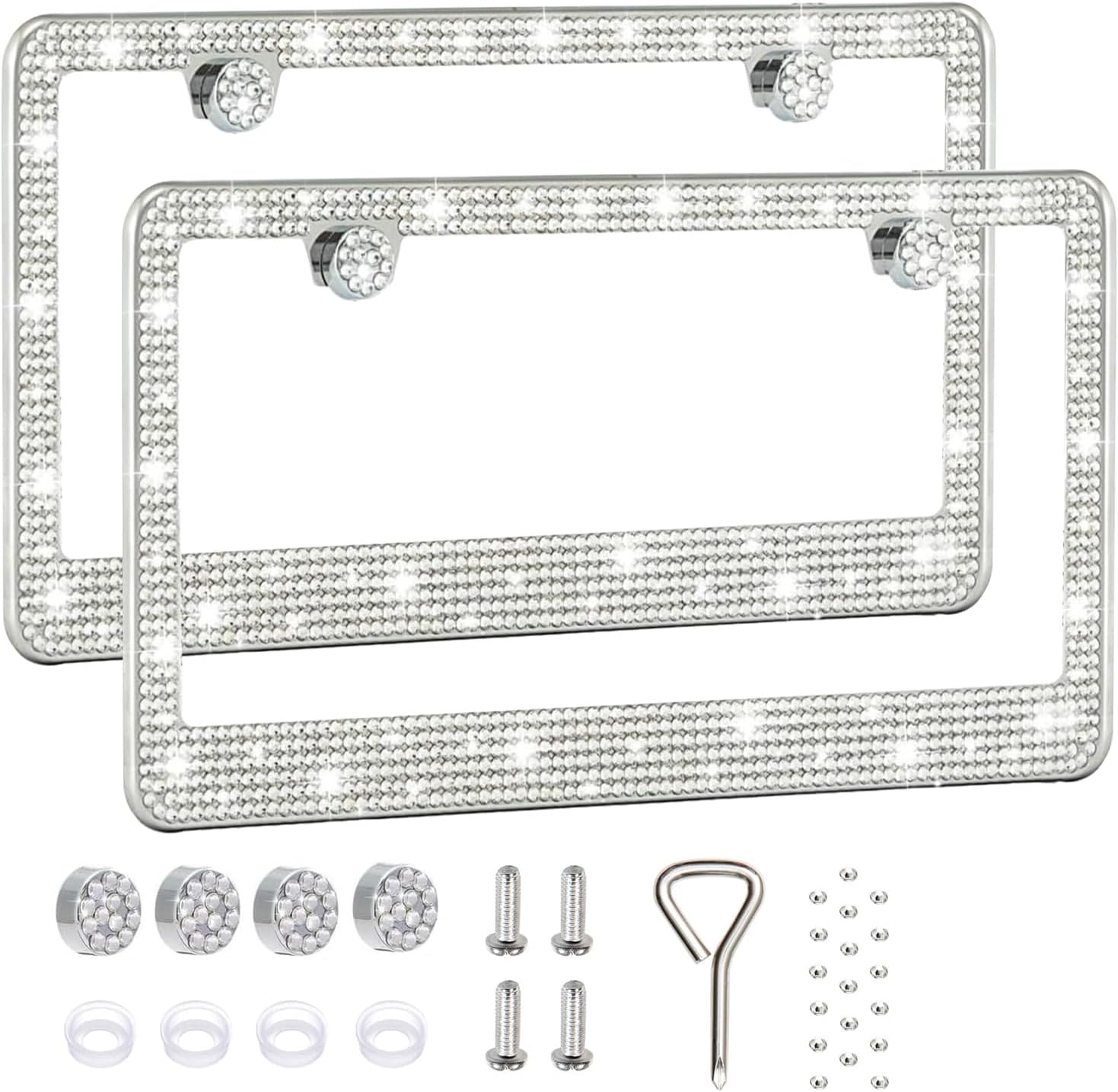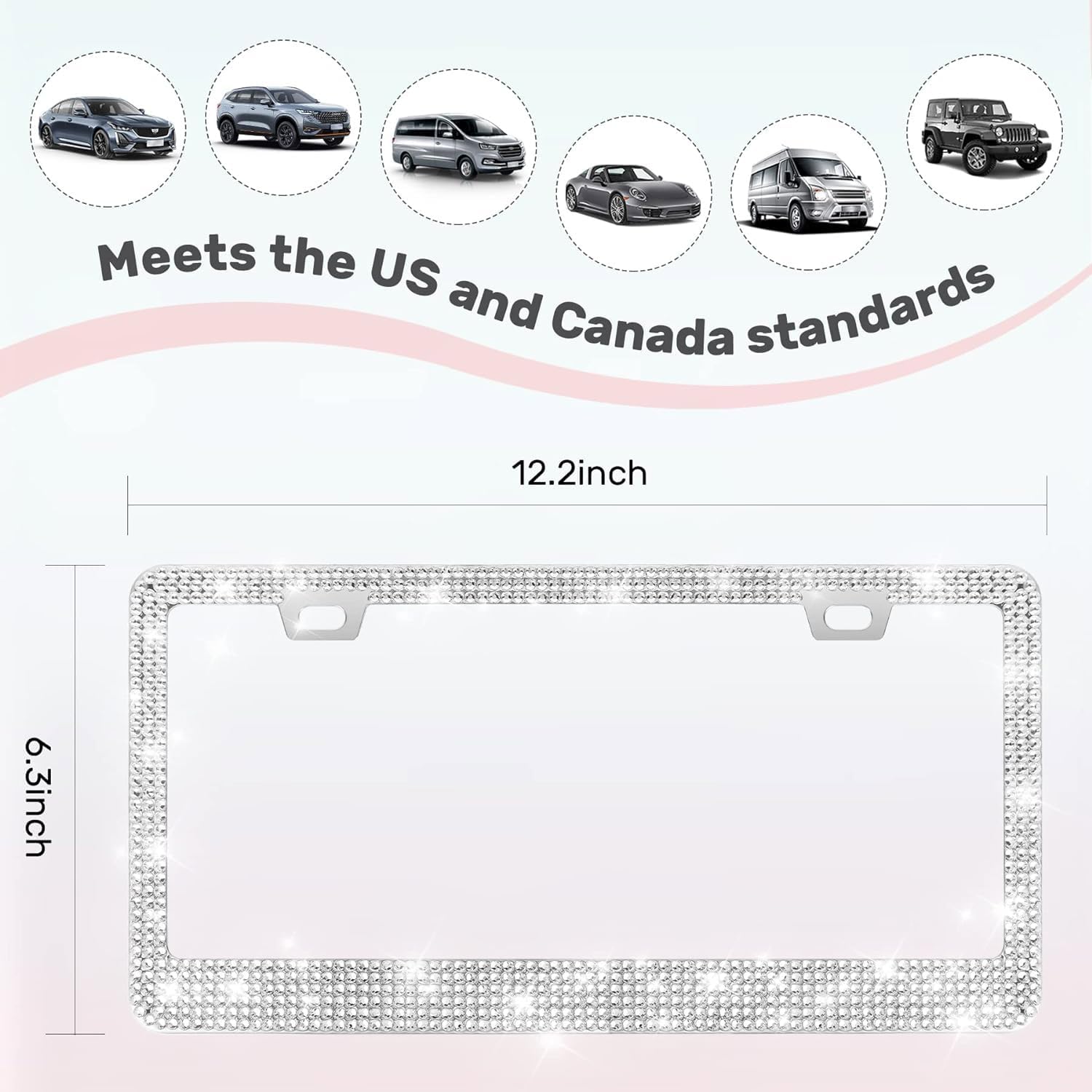 - 【Super Sparkly License Plate Frames】: Why go for boring plain license plate frames when you can go super fab with a car plate frame with actual rhinestones in it? Give your car a new cool look now! 2 Pack license plate frames for women are sure to make your car catch everyone’s eyes on the road