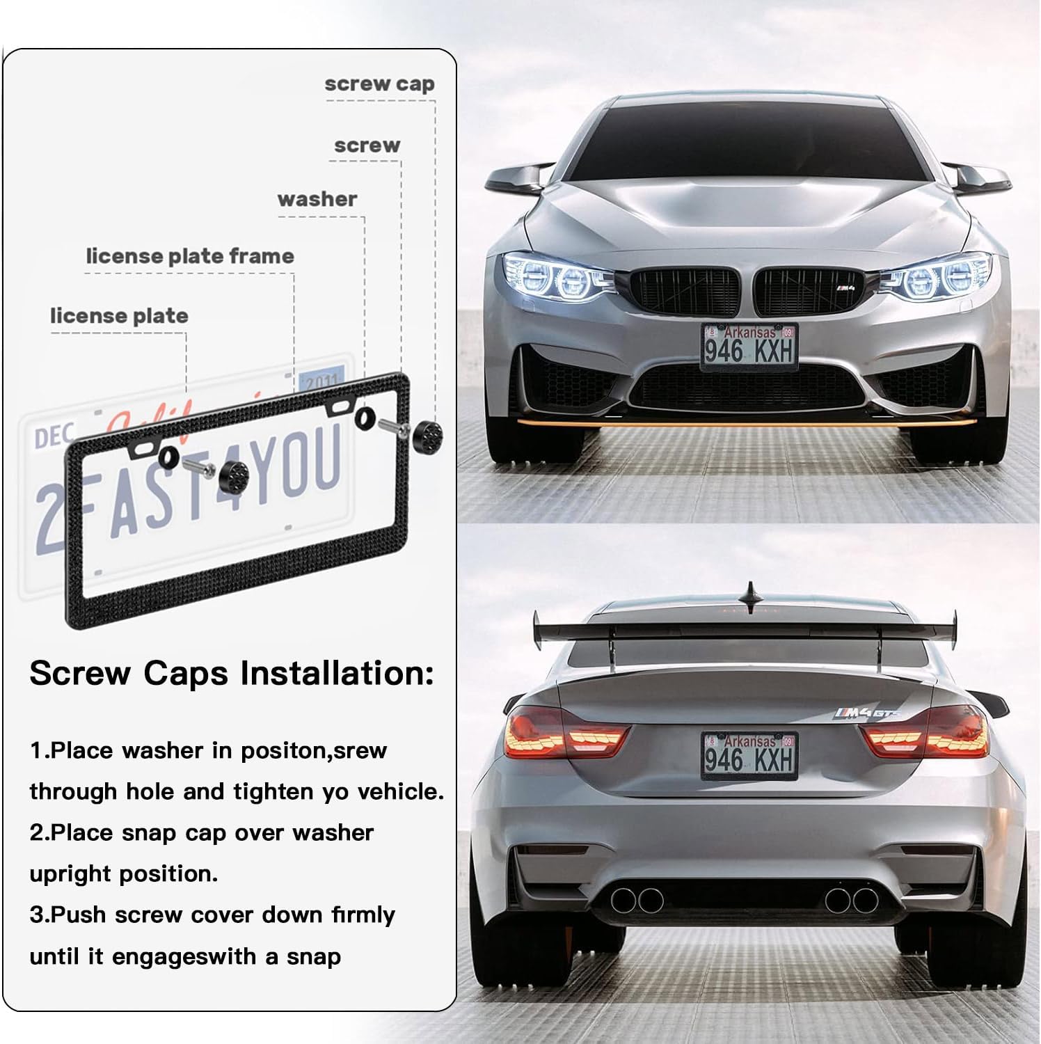 - 【Super Sparkly License Plate Frames】: Why go for boring plain license plate frames when you can go super fab with a car plate frame with actual rhinestones in it? Give your car a new cool look now! 2 Pack license plate frames for women are sure to make your car catch everyone’s eyes on the road