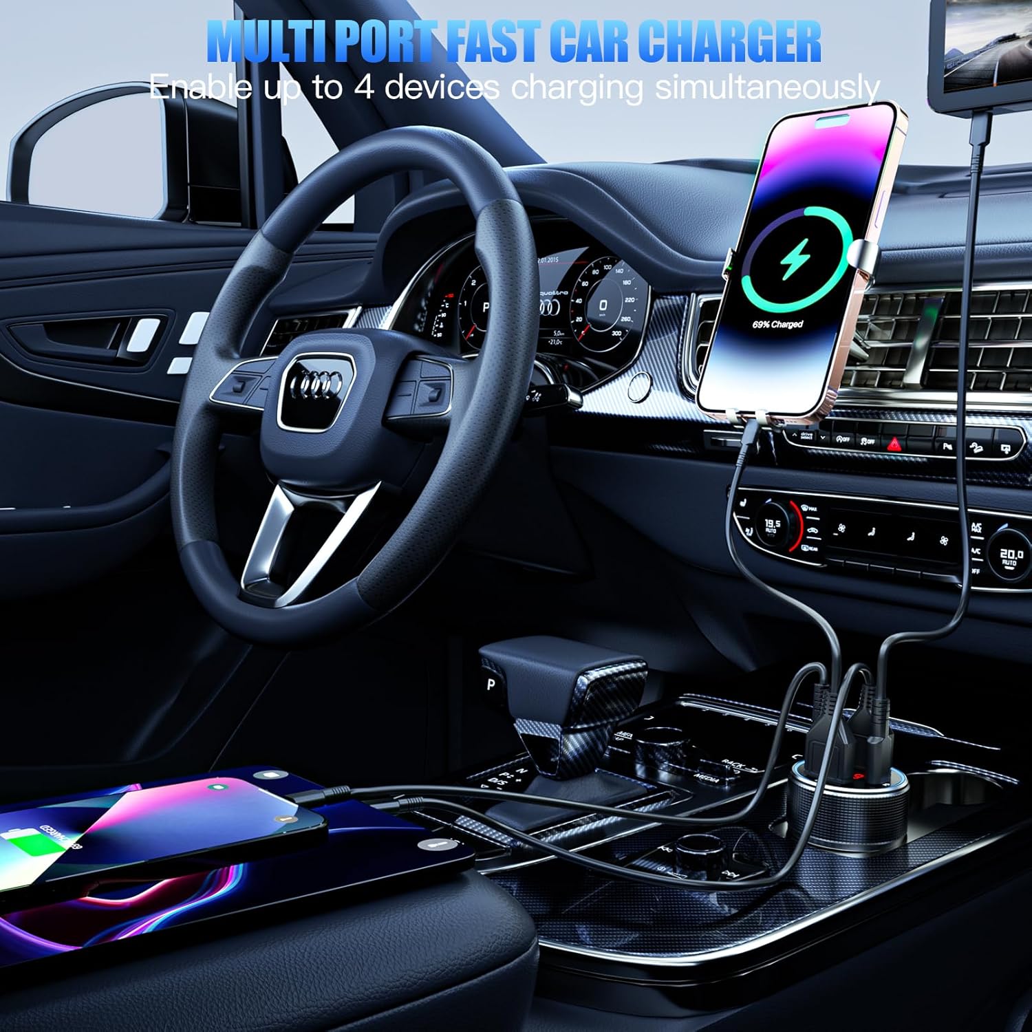 - Multi-port Fast Charging Car Charger : Car charger adapter is a versatile USB C car charger that comes with two USB-C ports and two USB-A ports, designed to rapidly charge a variety of USB-C and USB-A devices at the same time. This cigarette lighter usb charger is the perfect travel companion for all your smartphones, tablets, and all USB devices.