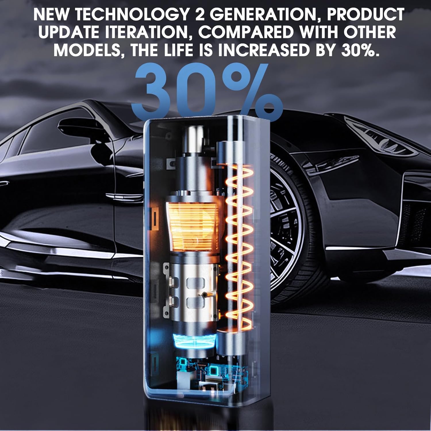 • 【3x Faster Inflation Speed】This powerful tire inflator portable air compressor reaches up to 150PSI, equipped with a high-performance chip and high-power motor, it takes only 1 minute to increase tire pressure from 30PSI to 36PSI, or approximately 5 minutes to fully inflate a car tire (0-36PSI), this air pump for car tires operates efficiently and rapidly