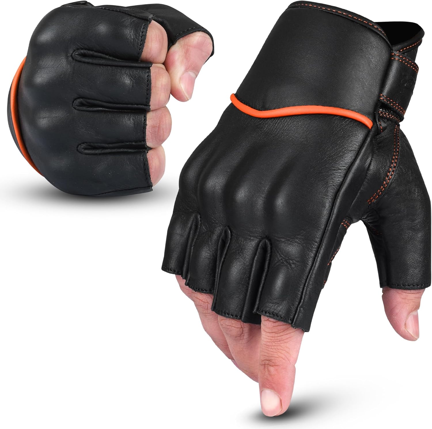 - ANTI-SLIP and ABRASION RESISTANT - The palm of gloves for motorcycle features anti-slip palm part, providing excellent grip and abrasion resistance when riding. This motorcycle leather gloves is sewed with Double-layer Leather. The leather on the palm increase more friction for better grip during climbing motorcycling workout. Wear-resistant, anti-slip, lightweight and fast drying.Suitable for your favourite motorcycle, cruiser, scooter, dirt bike and outdoor sports