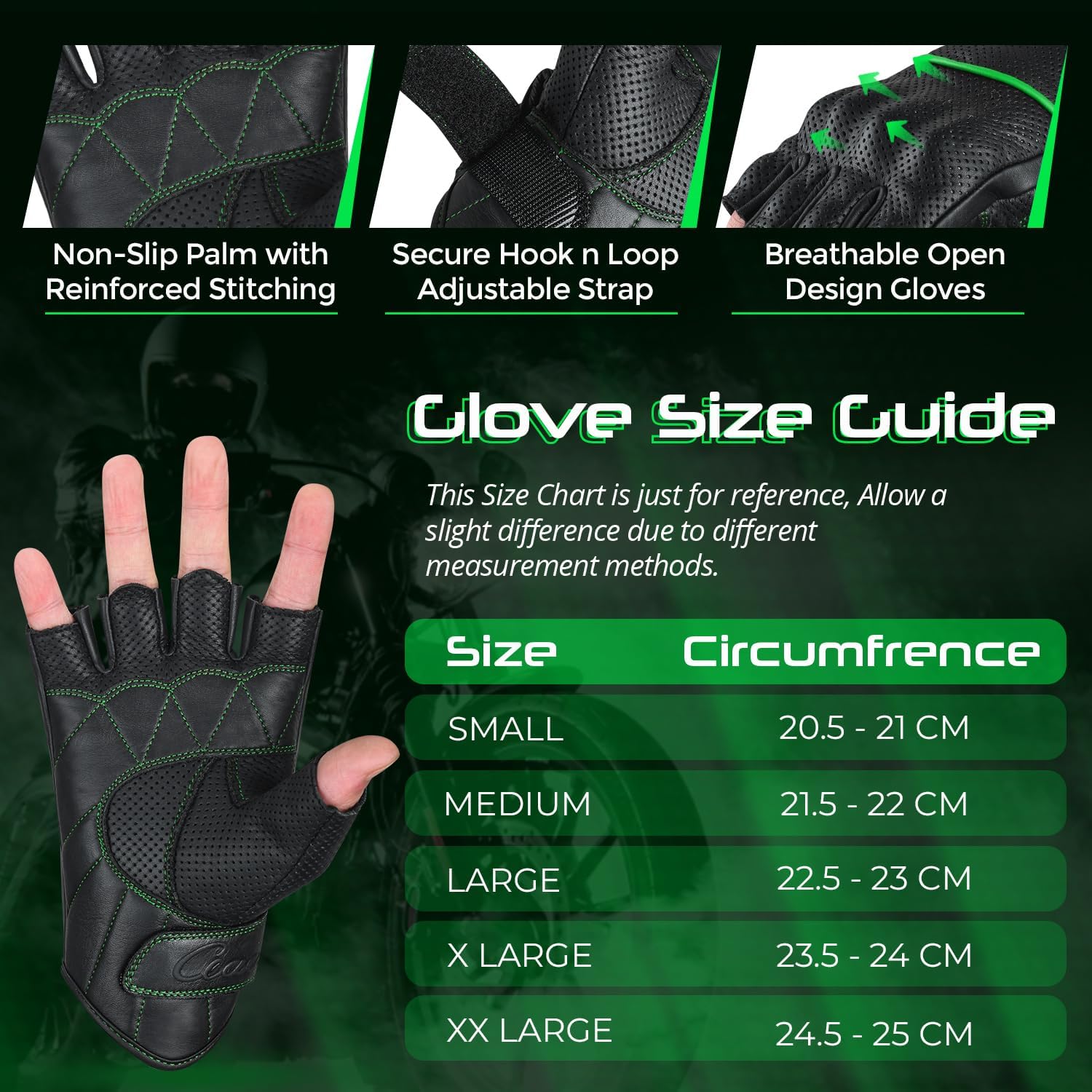 - CHOOSE THE RIGHT SIZE - Our Men's Motorcycle Gloves Offers Five sizes, the Motorbike Gloves offer the perfect fit for men and women. Check our size chart and find the right size for your hands