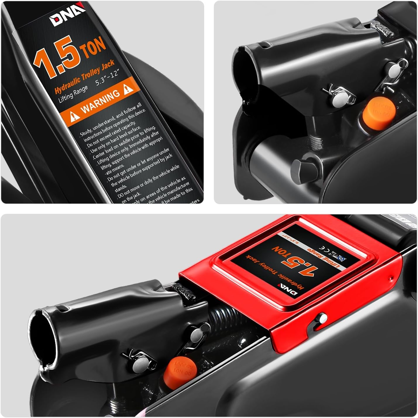 DNA MOTORING Low Profile Hydraulic Trolley Service/Floor Jack, 1.5 Ton (3000 lbs) Capacity, Lifting Range 5.3"-12", Black, TOOLS-00327-BK