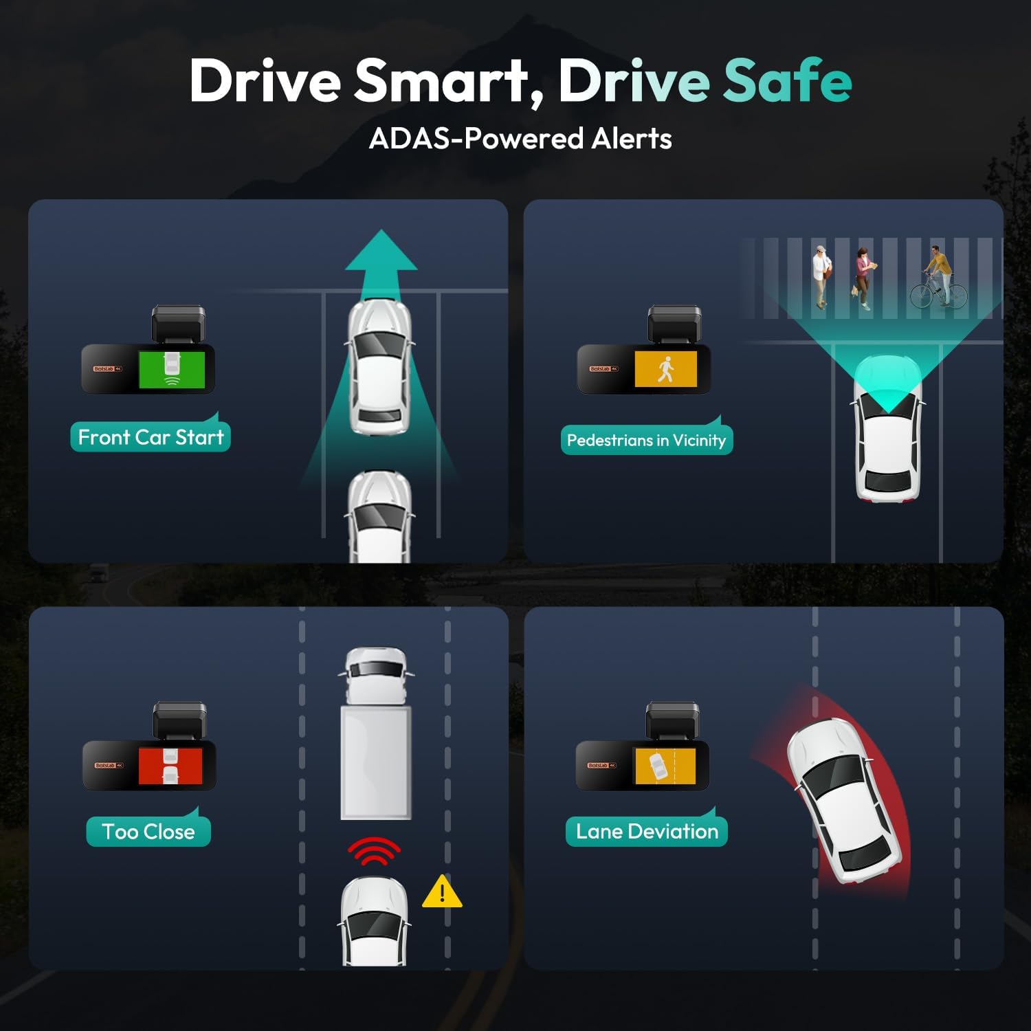 4K+2K Dual Dash Cam Front and Rear, Dashcam with Voice Control, STARVIS, ADAS Driver Alerts, Starry Night Vision, 24/7 Parking Monitor, 5.8GHz WiFi & GPS, Free 64GB Card, Loop Recording
