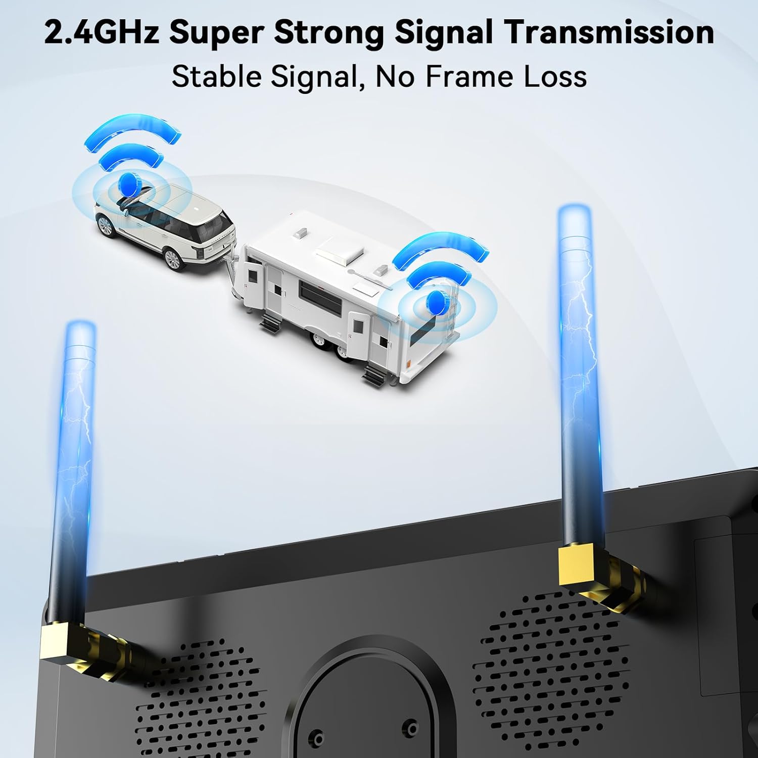 • Dual Antenna for Strong, Stable Signal: With dual antennas, this rv backup camera wireless offers superior signal strength and stability, even in remote areas. 320ft range ensures smooth, uninterrupted performance, so you can rely on your wireless system wherever your adventure takes you.