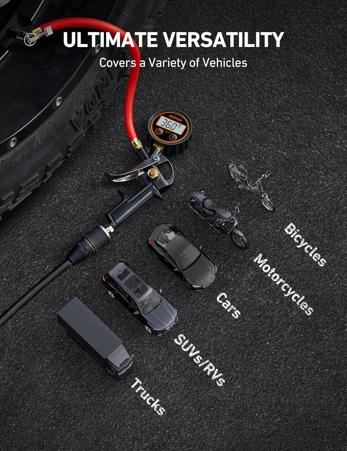 AstroAI T1 Digital Tire Pressure Gauge with Inflator, 3-250 PSI Air Chuck with Pressure Gauge, Heavy Duty with Quick Connect Coupler, Calibrated to ANSI B40.7 Grade 2A