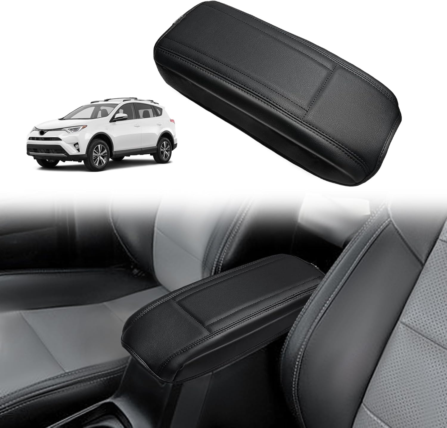 Muslogy Center Console Armrest Cover Compatible with Toyota RAV4 2013-2018 Comfort Armrest Pad Arm Rest Cushion Vegan Leather Protector Regular Thick