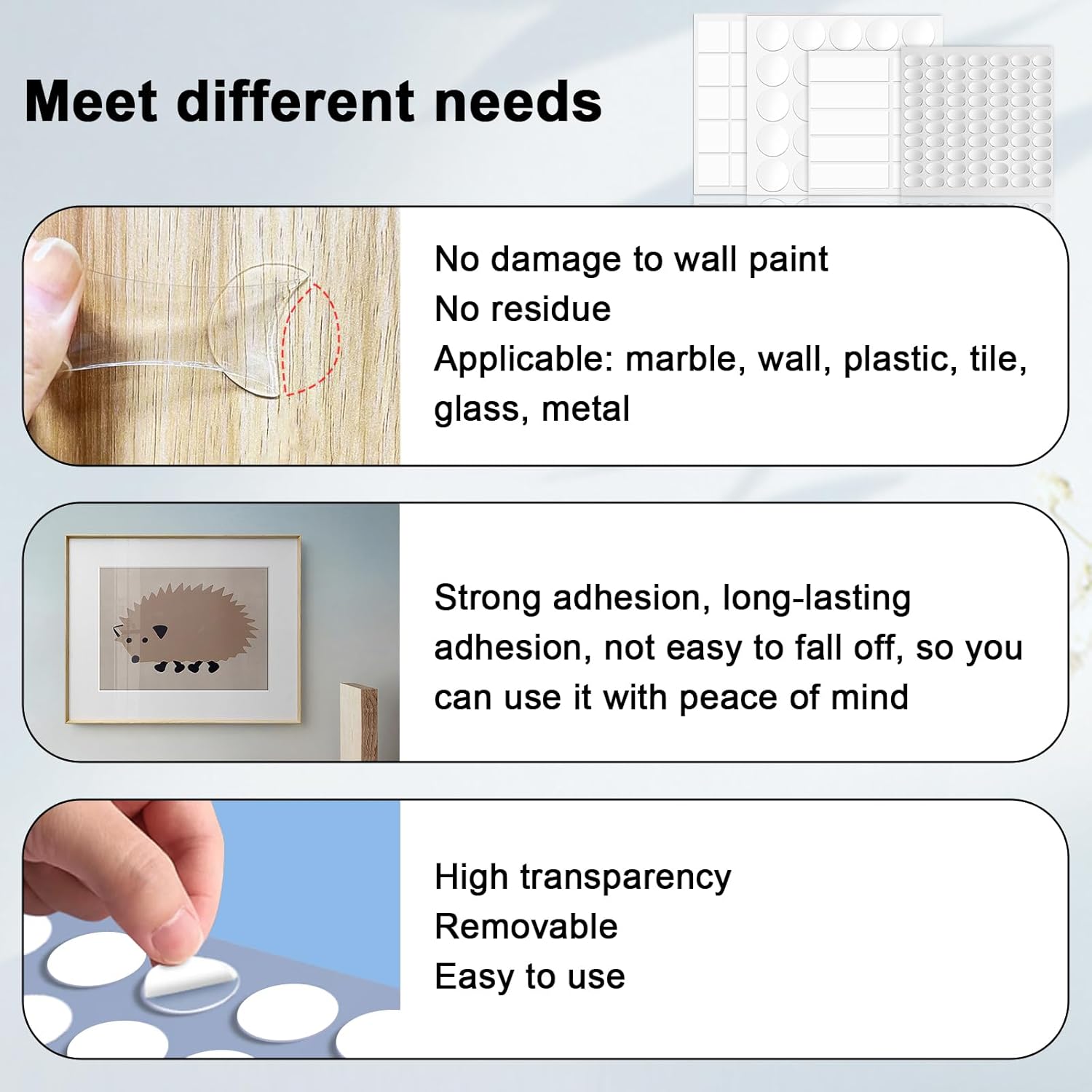 360pcs Nano Double Sided Tape for Wall 0.8" Sticky Dots Mounting Putty Two Sided Adhesive Museum Putty Multi-Shape Sticky Tack No Traces - Crafts Poster Decoration Picture Hanging Crafting Party