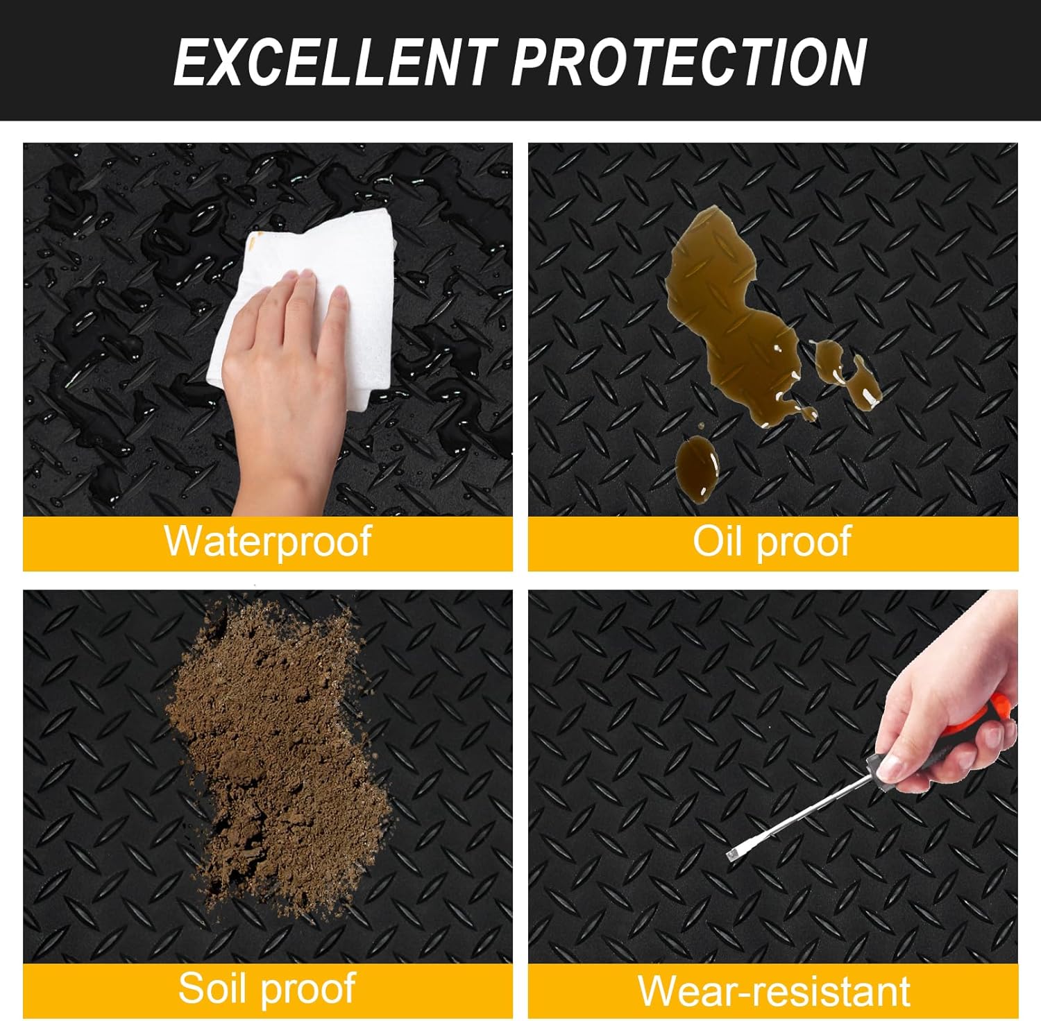 - Durable Protection: This garage floor mat is made from high-quality, heavy-duty material designed to protect your garage floor from oil spills, dirt, water, and other debris, ensuring a clean and safe workspace.