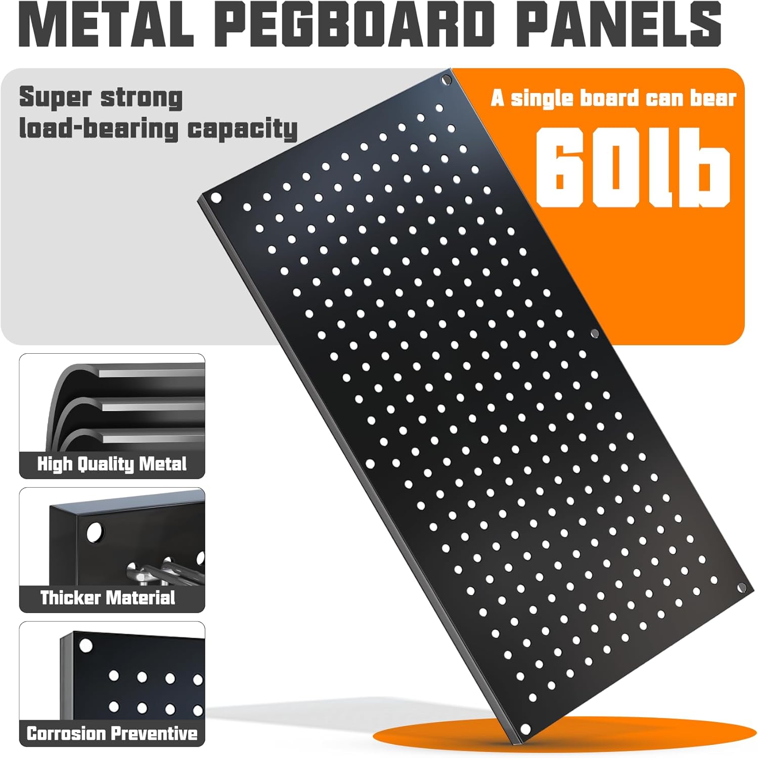 - Sturdy and Durable: Tool organizer board is made of high-quality steel with a black powder-coated finish, resistant to rust, crack, scratch resistant and easy to clean. Modular pegboard has a strong load-bearing capacity, subjected to heavy loads, it maintains structural stability without deformation or damage