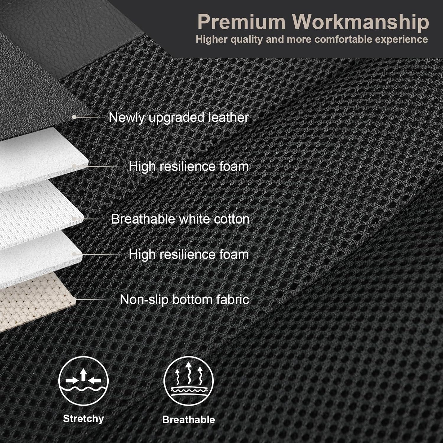 - The combination of padded faux leather and breathable mesh not only enhances overall practicality and aesthetics but also protects the original seats from wear, stains, and pet hair.
