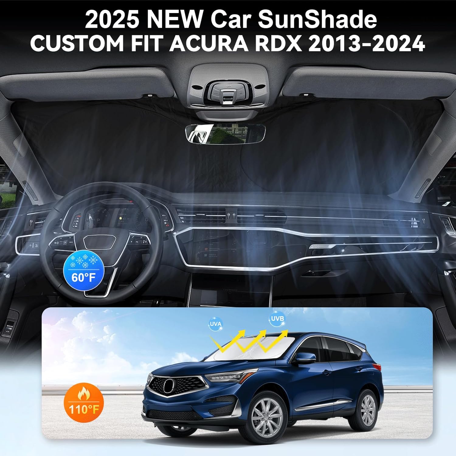 - [CUSTOM-FIT FRONT WINDSHIELD SUNSHADE] Automotive windshield sun shade is Specifically designed,which for Acura RDX 2013 2019-2023 2024 2025 2026 accessories. We have several size of car sunshade. Please measure your car size and refer to our size before your purchase. Once installed it won't have gaps, sags or slumps like other car sun shade windshield