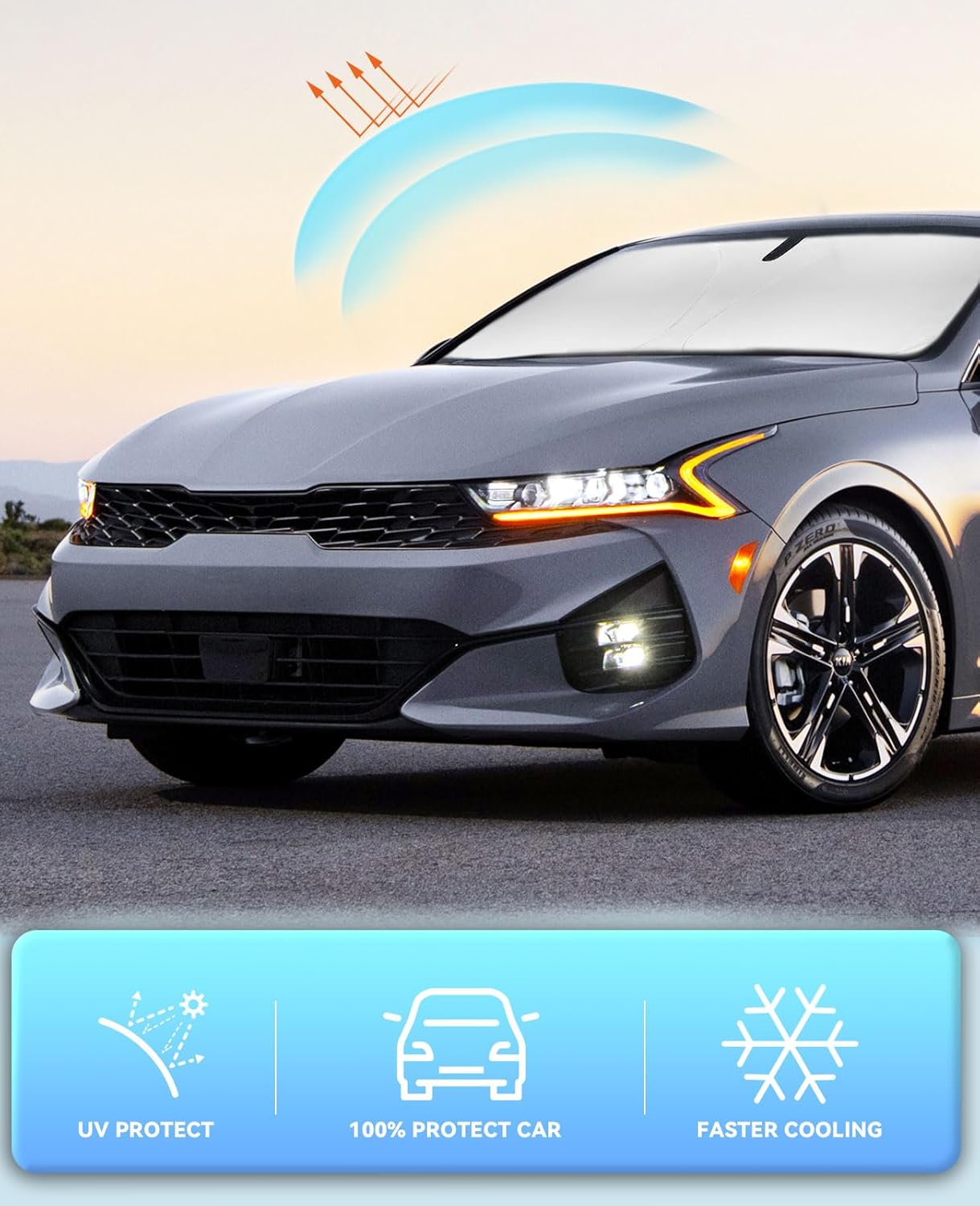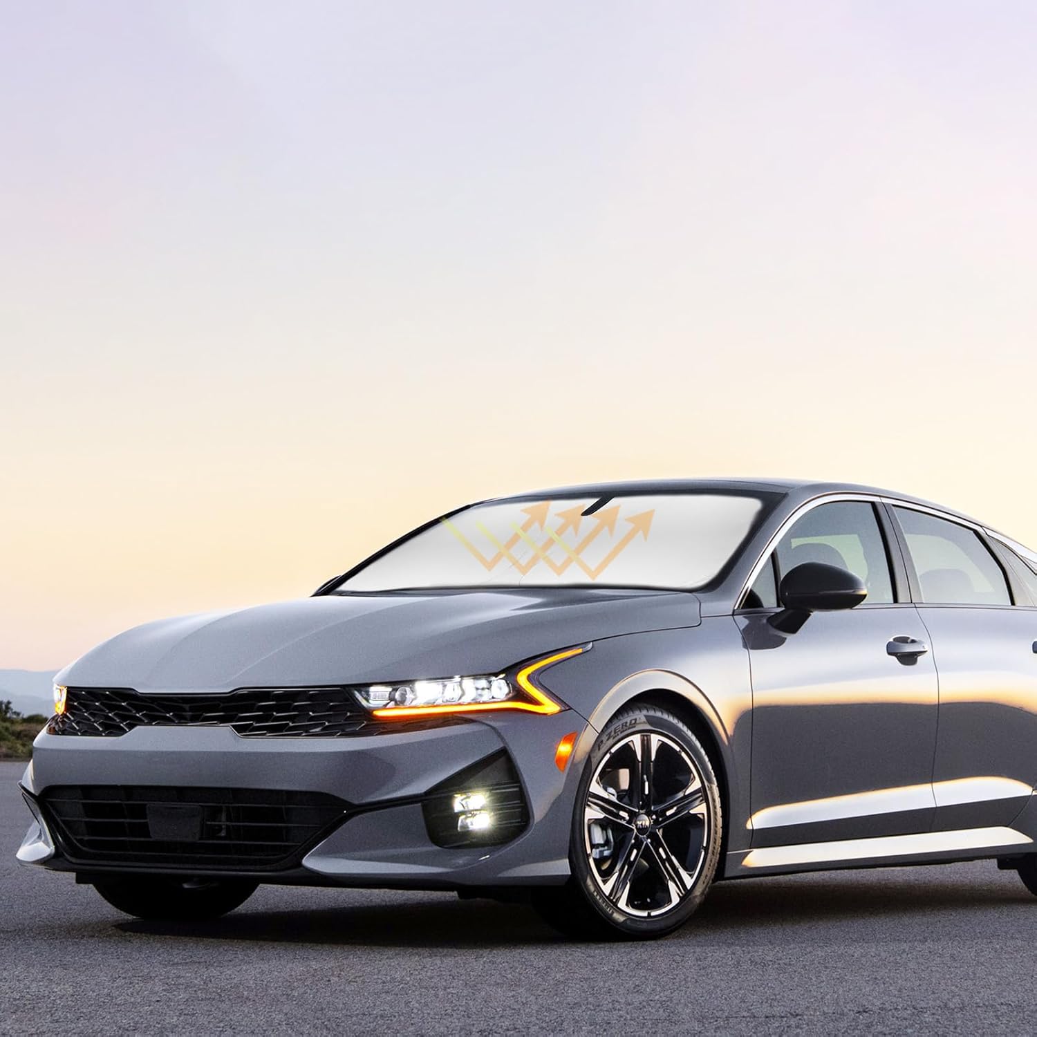 Windshield Sun Shade for 2021-2024 2025 2026 Kia K5, GT-Line, GT, Sedan Accessories Windshield Sun Visor Cover for K5 Front Window Shield 240T Reflective Polyester Protector Block UV Ray