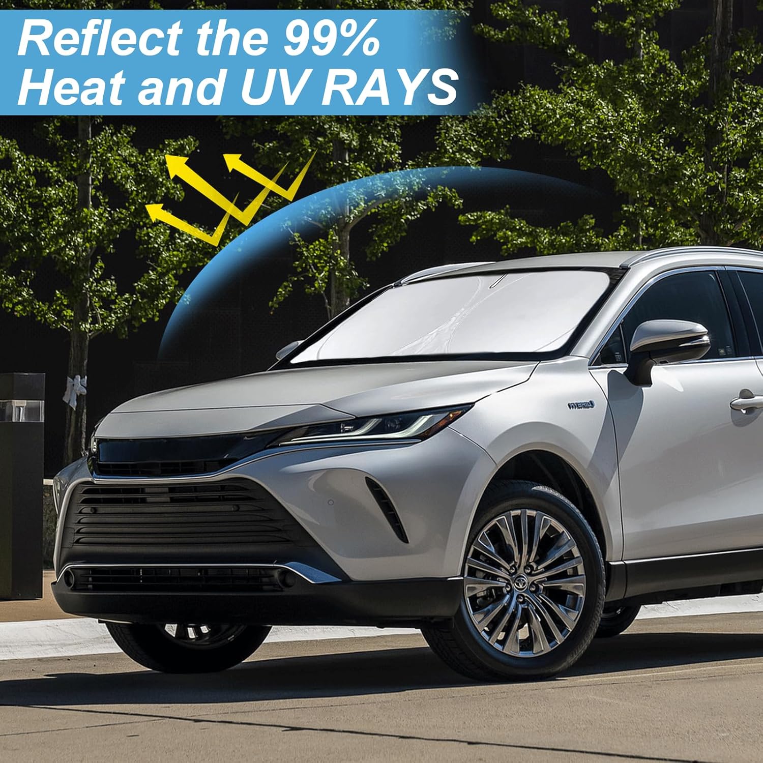- [CUSTOM-FIT FRONT WINDSHIELD SUNSHADE] Automotive windshield sun shade is Specifically designed,which for 2021 2022 2023 2024 2025 Toyota Venza, LE, XLE, Limited, SUV accessories. We have several size of car sunshade. Please measure your car size and refer to our size before your purchase. Once installed it won't have gaps, sags or slumps like other car sun shade windshield