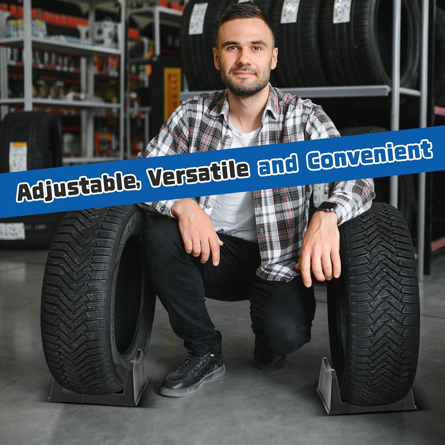 - Adjustable, Versatile and Convenient: this car wheel display stand features an adjustable length to accommodate various tire sizes; You can place it on the ground, table, or anywhere as per your liking; It serves as a practical solution for businesses requiring frequent relocations of display racks, thanks to its lightweight and easy-to-storage design