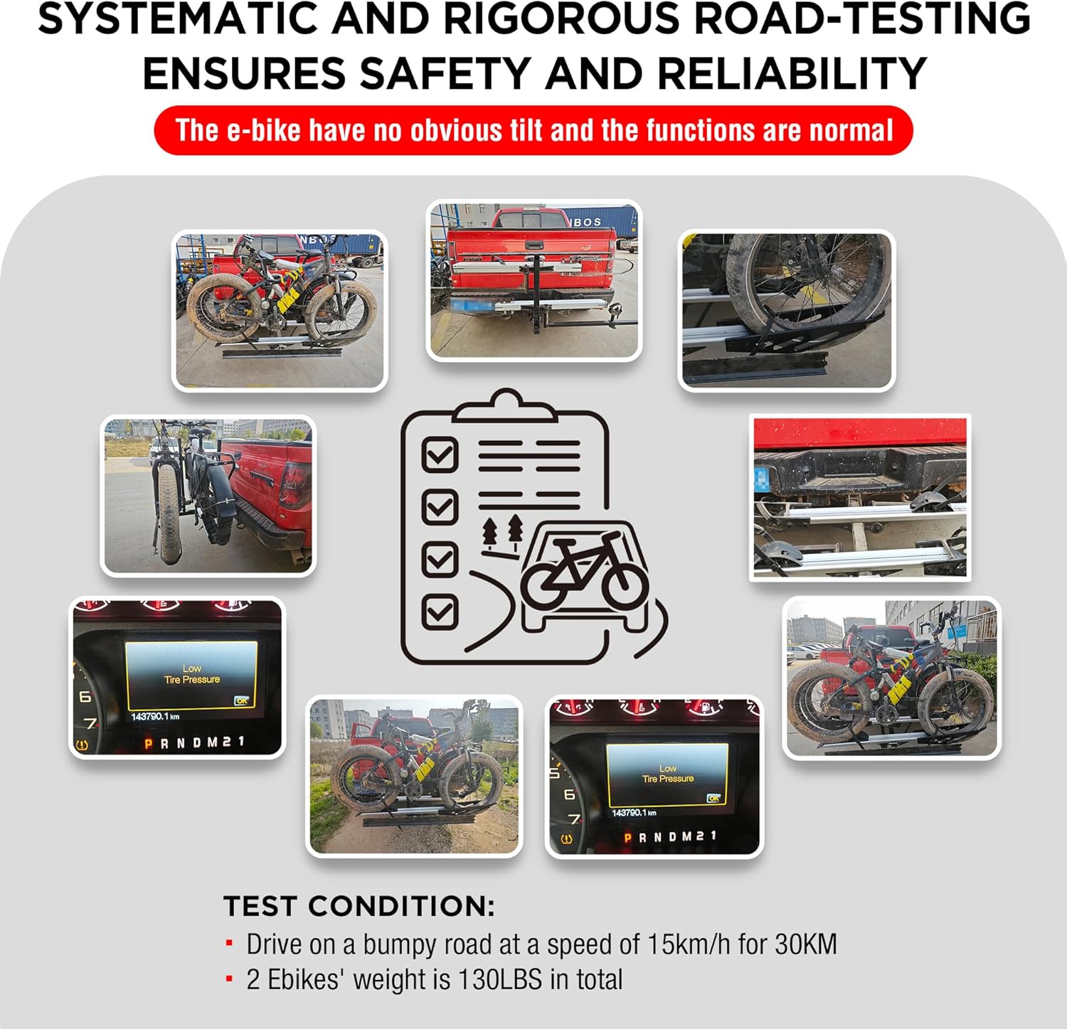 - LOADING RAMP INCLUDED: No need practicing weightlifting any more! Most of the ebikes are quite heavy, to be honest. It is not an easy thing to lift it onto the rack by oneself. The ramp and rack can be securely hooked together through a slot and buckle system. You can push the ebikes onto it effortlessly.