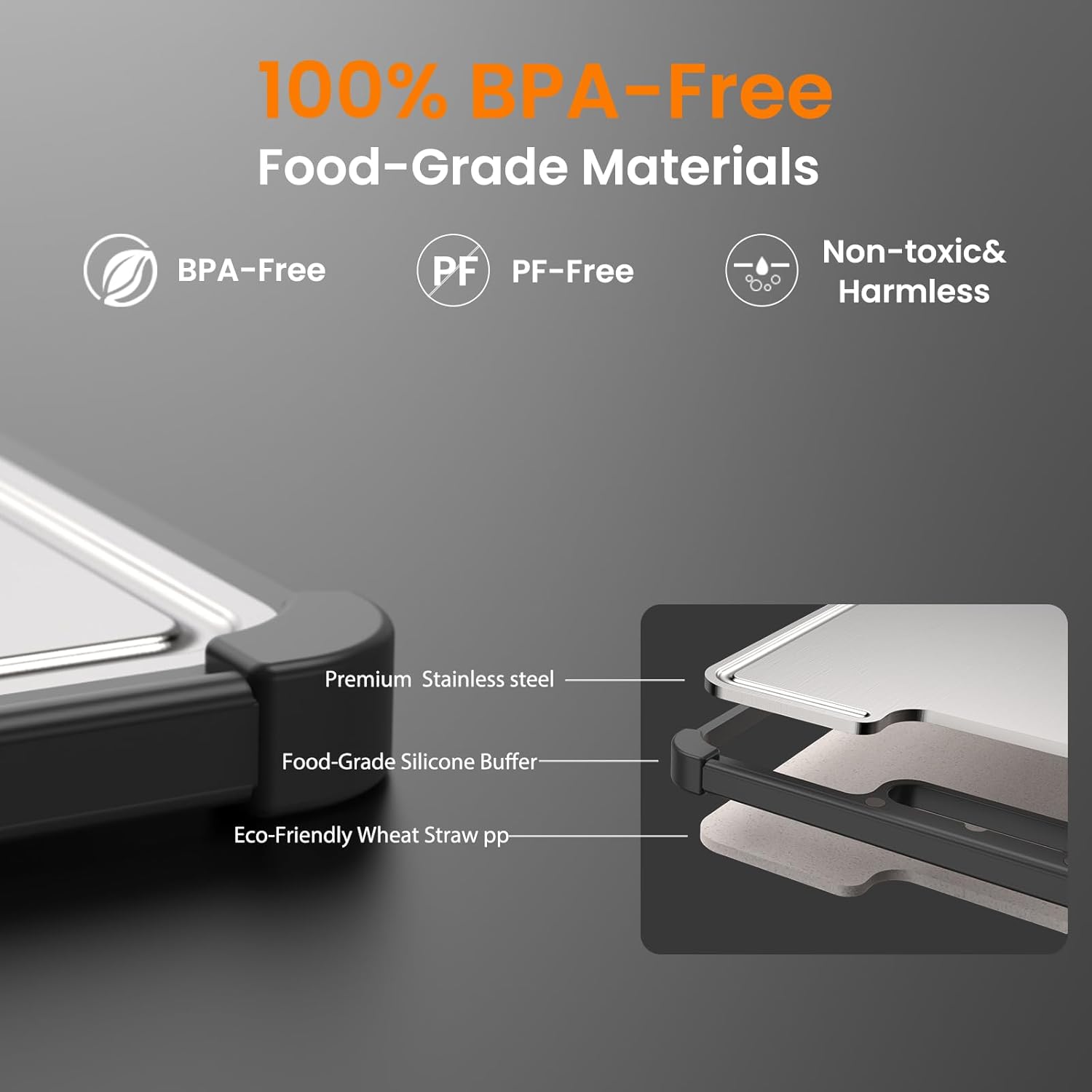 - Premium 316 Stainless Steel & Food-Grade Wheat Straw PP Crafted from high-grade stainless steel, our cutting board is non-toxic, BPA-free, and resistant to odors and stains. A must-have for kitchen essentials for new homes and health-conscious cooks