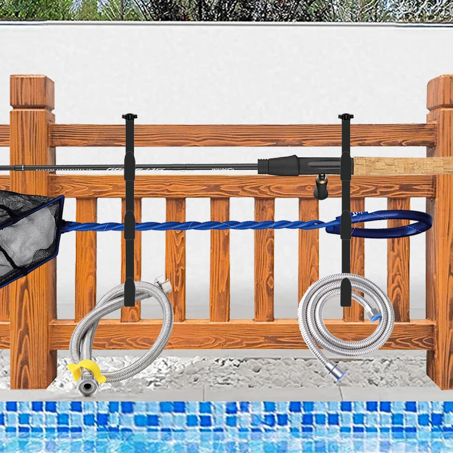 2Pcs Black Pool Pole Hangers, Adjustable Heavy Duty Swimming Pool Fence Hooks for Pool Equipment, Skimmers, Leaf Rakes, Nets, Brushes, Vacuum Hose, Garden Tool Organizer